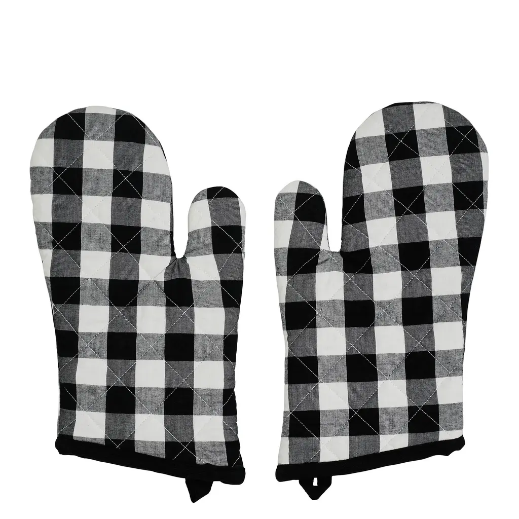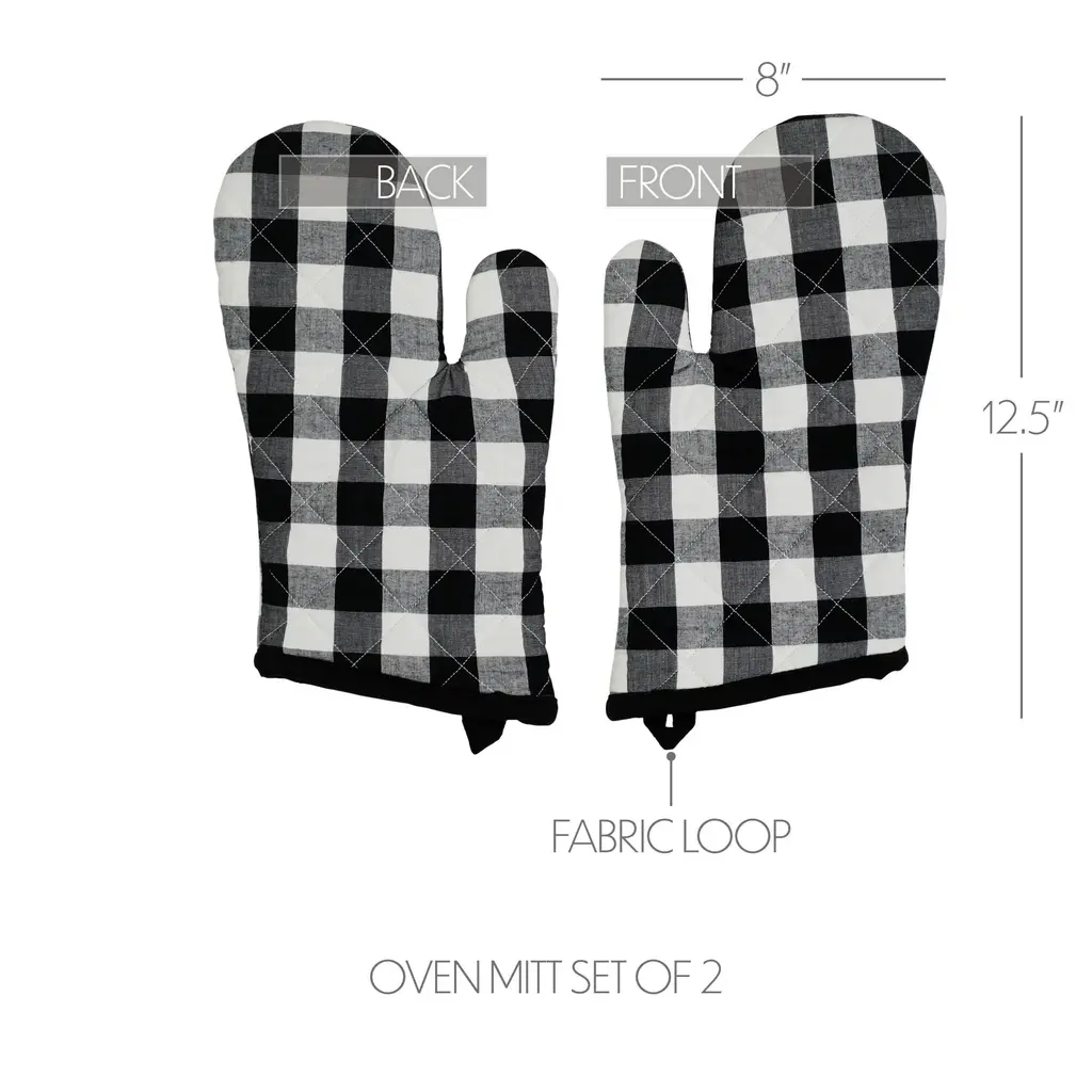 Elevate your farmhouse or country-style kitchen with the VHC Brands Cotton Oven Mitt Set of 2 from the Annie Buffalo Check Collection. These 12.5x8-inch oven mitts are designed for heavy-duty use, ensuring your hands are protected when handling hot cookware. Crafted with high-quality cotton, these mitts offer a flat weave textured grip that provides excellent control for both men and women during baking, cooking, or grilling. The Annie Buffalo Check Collection's classic buffalo check design in country black adds a timeless touch to your culinary space. This set of oven mitts is heat-resistant and built to withstand the rigors of cooking. Whether you're baking, cooking, or grilling, these mitts will help you do it safely and stylishly while adding a touch of classic charm to your kitchen.
