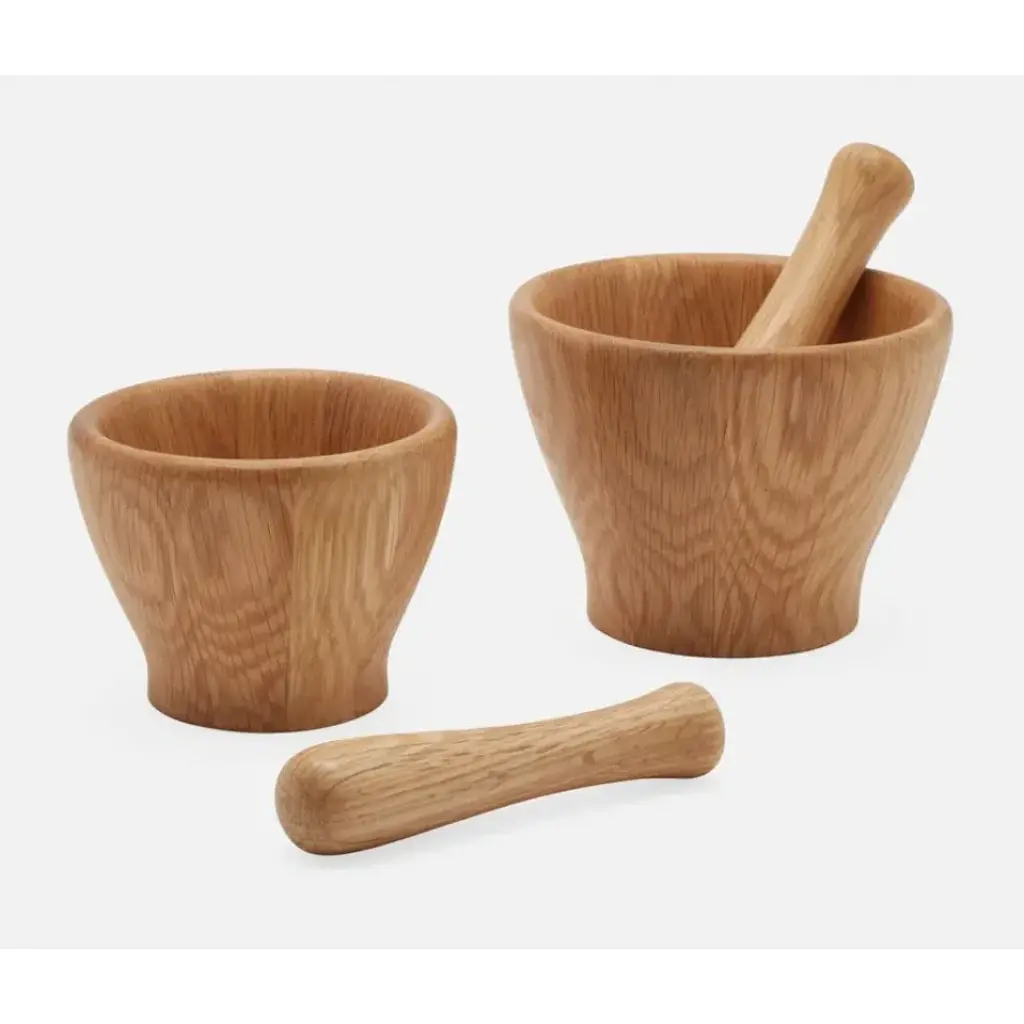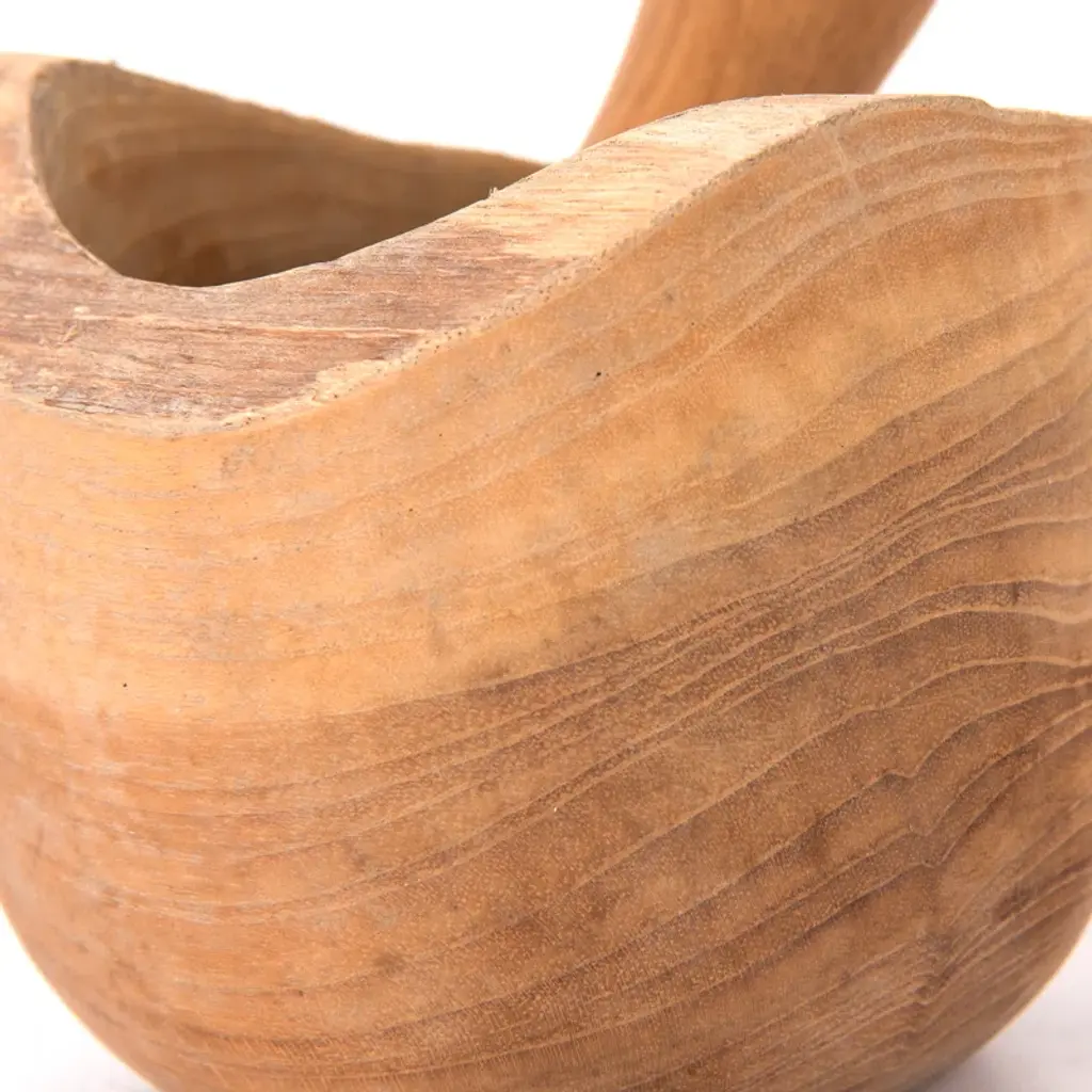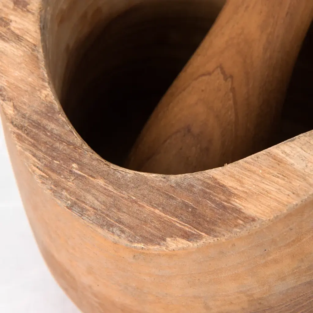 Whether you are making pesto, guacamole, salad dressing, or an aromatic spice blend, this teak mortar and pestle gets the job done in style. Carved from one solid piece of teak root, it is sturdy and durable as well as aesthetically pleasing with its wood grain and warm color. Add this often-ignored but incredibly useful tool to your cookware collection.