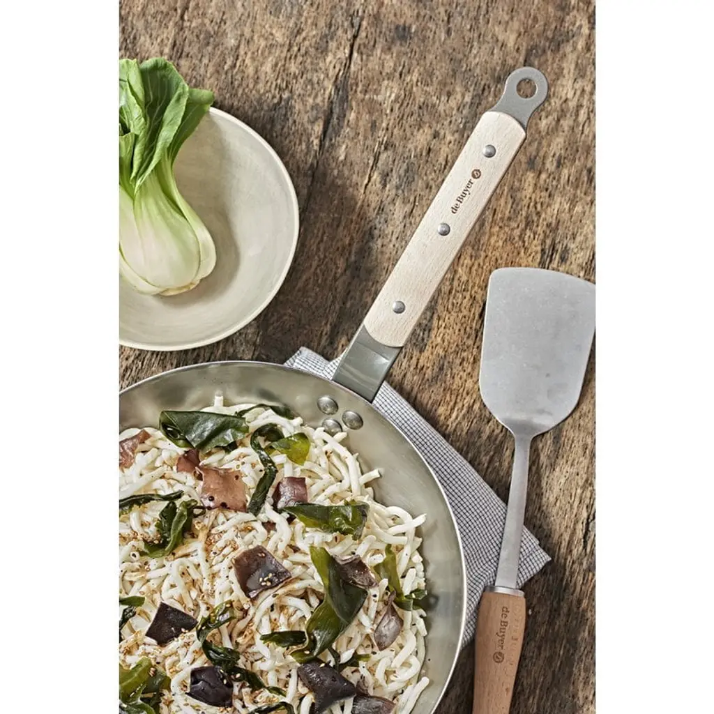 B Bois spatula by De Buyer is part of a kitchen utensil collection that combines strong stainless steel with fine beechwood. The ergonomically shaped wooden handle has a hole for hanging. B Bois kitchen utensils are finished with a natural beeswax coating.