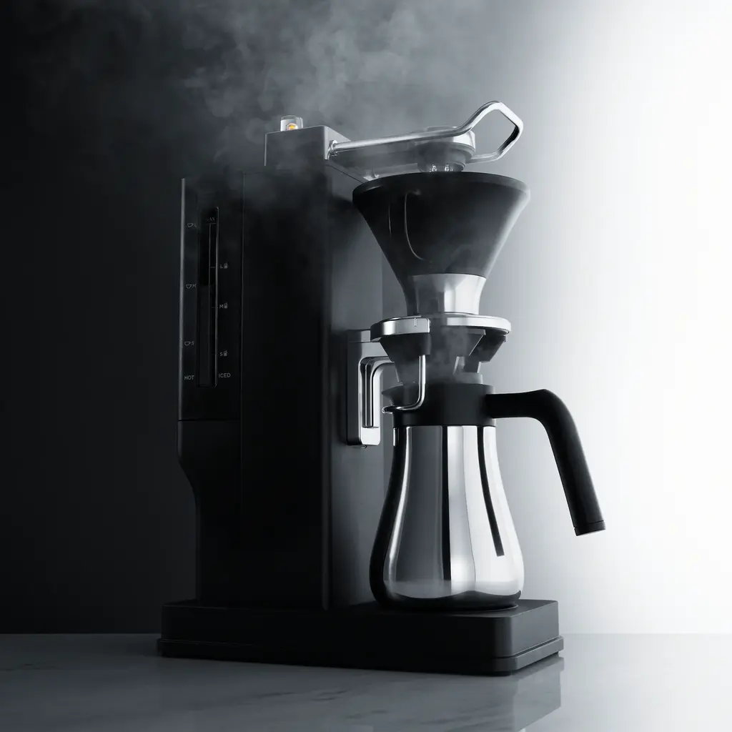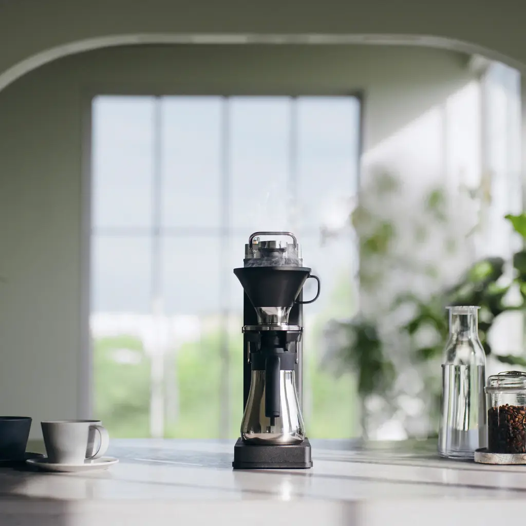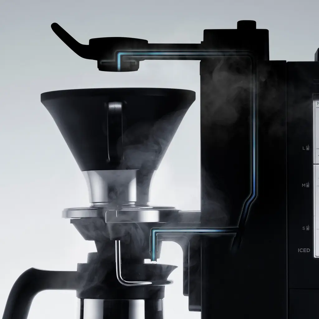 The perfect barista-quality pour-over in your own home? That’s what you get with BALMUDA The Brew. With The Brew’s open-drip design, you get to watch the brewing process, savor the aroma and more with a five-senses brewing experience.Features of BALMUDA The Brew include: The Clear Brewing Method controls the amount of hot water poured, steaming temperature, pouring interval and the speed at which hot water is delivered. A bypass pouring system extracts only the deliciousness of the coffee without any bitterness. Choose from 3 modes to create the optimal brew for the type of coffee you desire: black, with milk or iced. A soft clock-like ticking sound enhances the brewing experience. Made from low carbon steel & glass-coated enamel. Small footprint so it’s easy to incorporate into your counter space. Powered by standard plug-in. Measures 15h x 5w x 10”d. Weighs 7.5 lbs.
