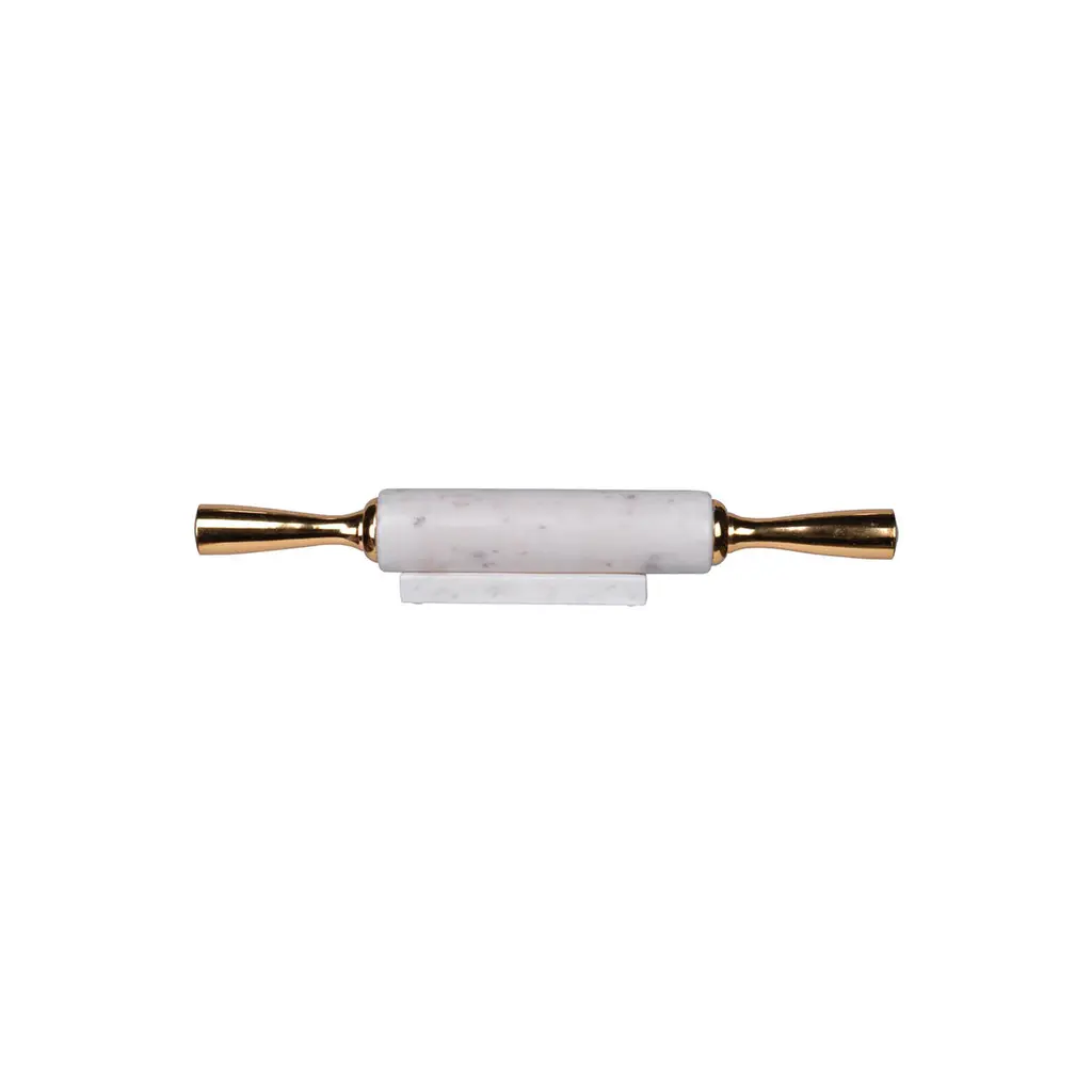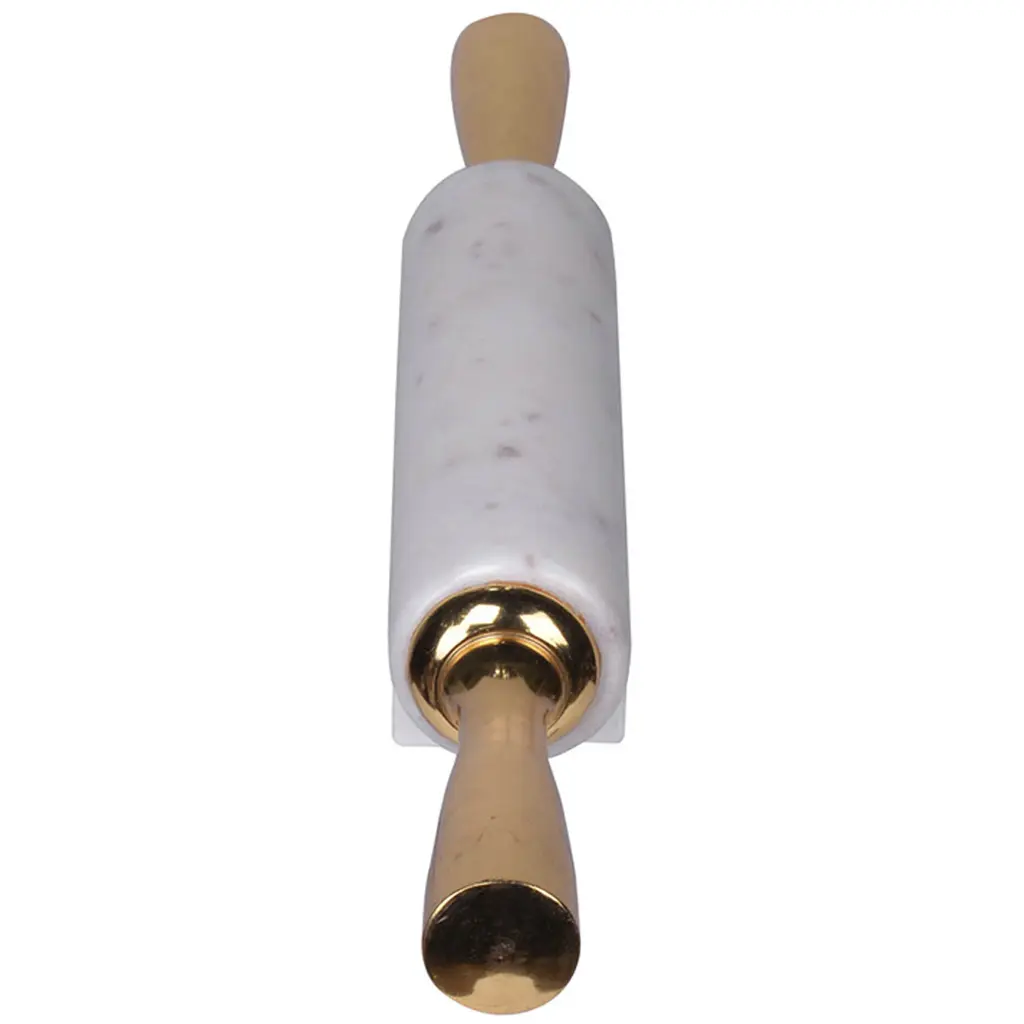 Enhance any baking project with a touch of glamorous style by using this marble rolling pin with gold handles from the Banswara Collection.