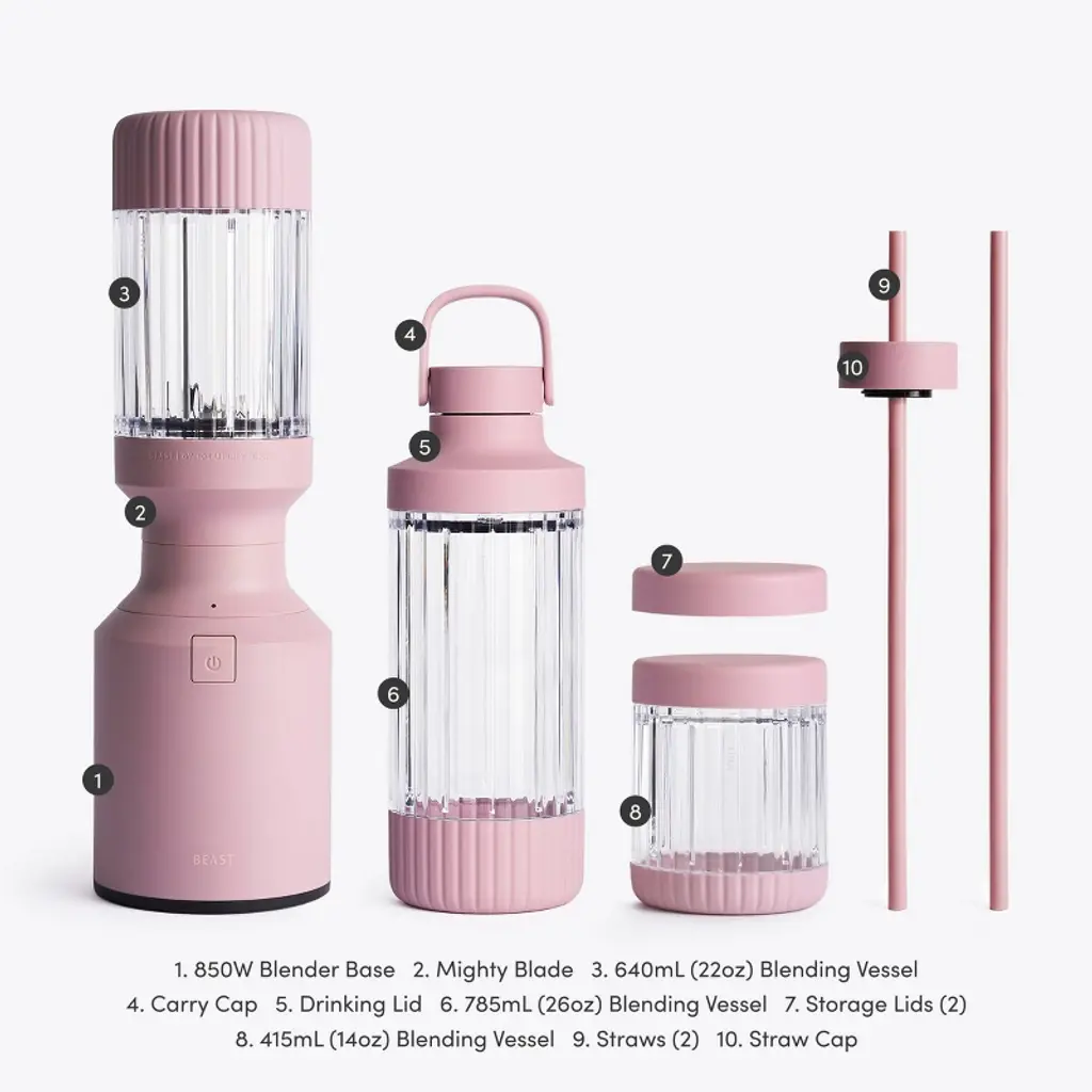 Meet the Beast Mighty 850: a premium, compact personal blender supercharged with 850W of power. It’s your kitchen swiss-army knife: your go-to blender for daily smoothies, dressings, dips, desserts, cocktails and more. With its sleek design and premium construction, this powerhouse blasts through the toughest ingredients, creating silky-smooth blends in seconds.