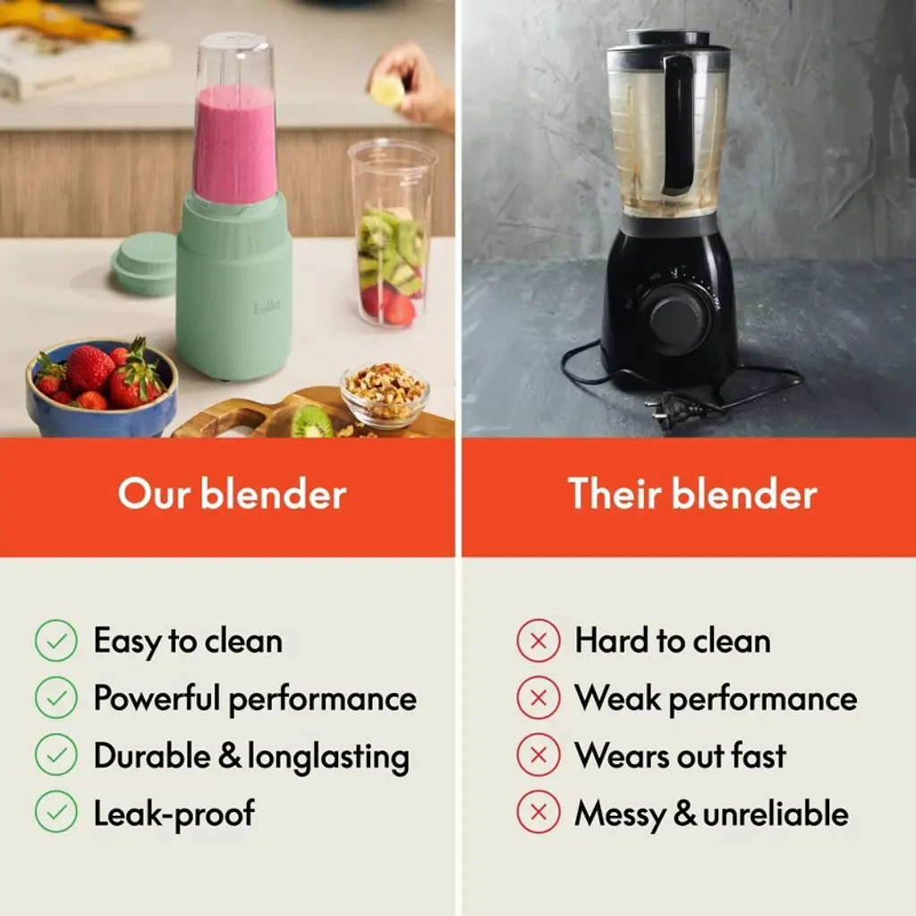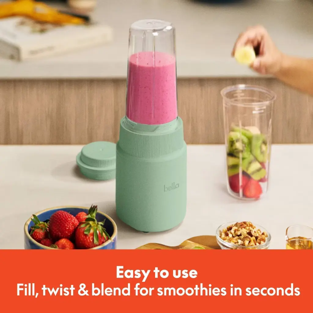 Want an easier, more powerful way to get your daily nutrients in? The bella Rocket Blender Boost has everything you need to hit your daily goals—even while on the go. The Rocket Blender Boost features a powerful 240-watt motor and comes with a durable stainless steel blade for crushing ice or frozen berries with ease. Engineered with simplicity, the Boost uses an easy 3-step operation—just fill, press and twist. Includes two 13.5oz cups and lids made without BPA so you can take your morning smoothie wherever you’re headed. Cleanup is easy with dishwasher-safe blade, cups and lids.