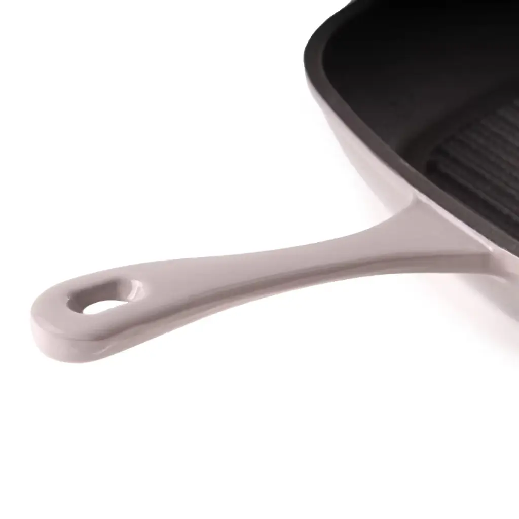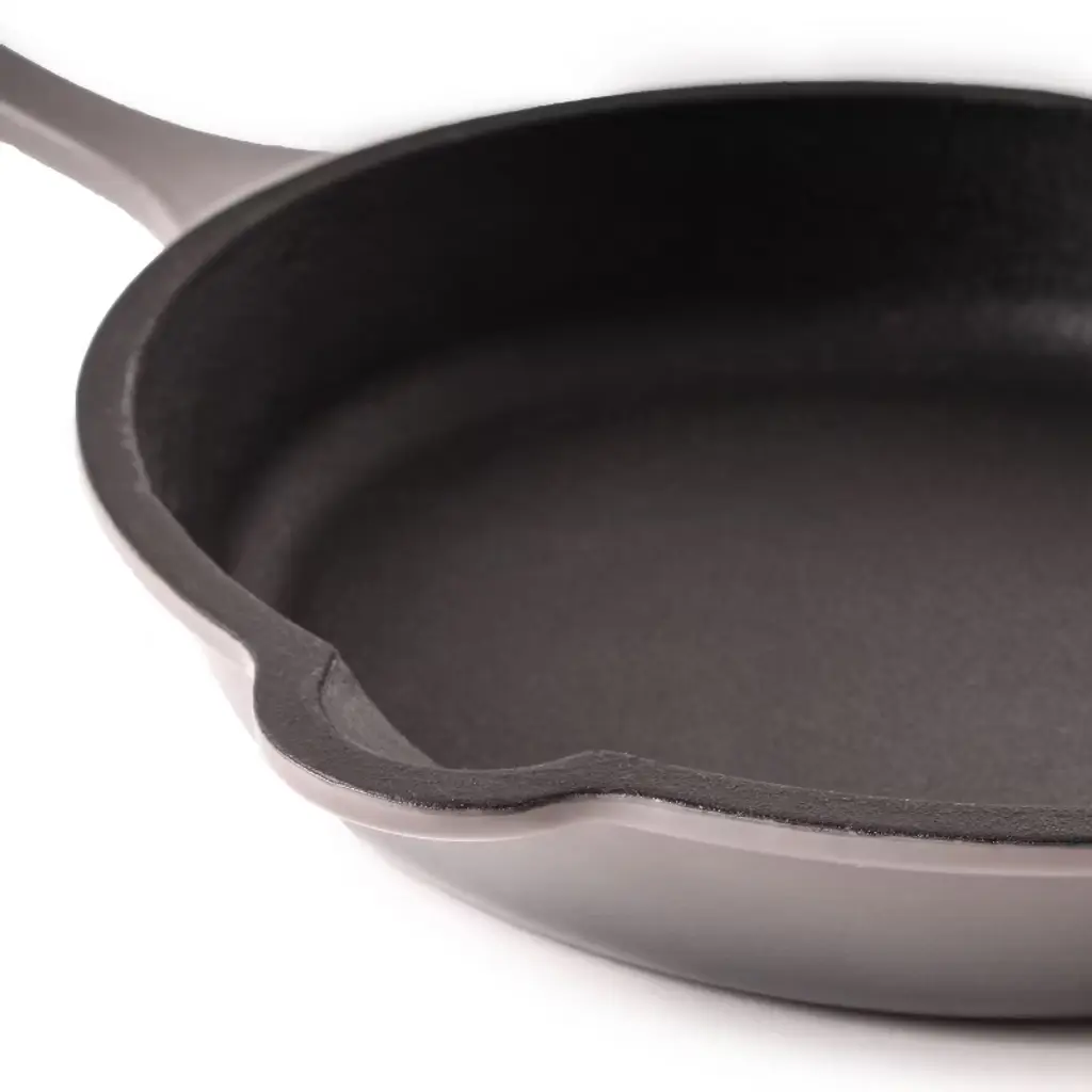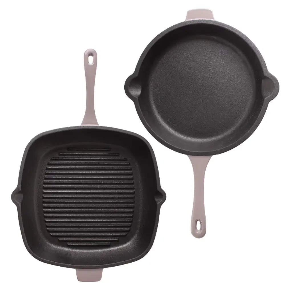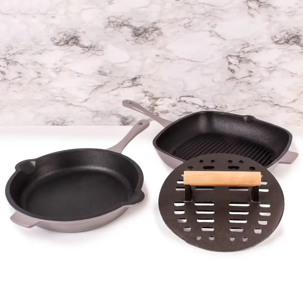 Berghoff Neo 3Pc Cast Iron Cookware Set, Fry Pan 10", Square Grill Pan 11" & Slotted Steak Press, Oyster