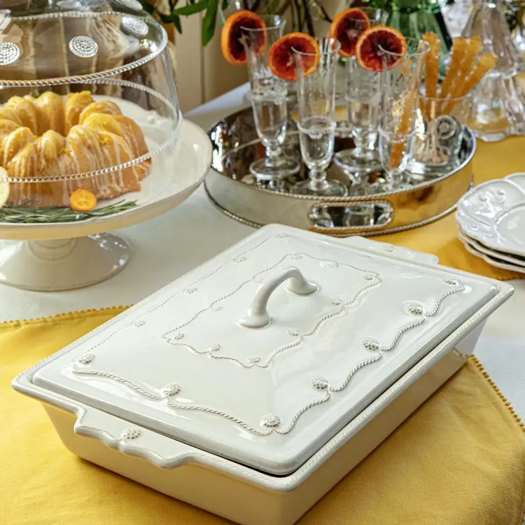 Just like the proverbial cherry on top, our go-to 13” rectangular baking dish has been given a lovely lid. Clad with handles and trimmed with our iconic Berry & Thread motif, this beautiful baker can go from the oven to your table -- or the neighbor’s table -- with style and grace. Leftovers? Pop on the lid and place in the refrigerator for tomorrow. Every morsel gone? Toss in the dishwasher for easy cleanup. Truly a staple piece worthy of all the superlatives! Based in Connecticut, Juliska is committed to bringing elegant European design into our modern homes. Since its founding in 2001, when David and Capucine Gooding began by working with artisans outside of Prague to reproduce antique Bohemian glass pieces, every piece from Juliska has shared a rich heritage spanning six centuries of European design. Juliska's creations are timeless, romantic and effortlessly chic.