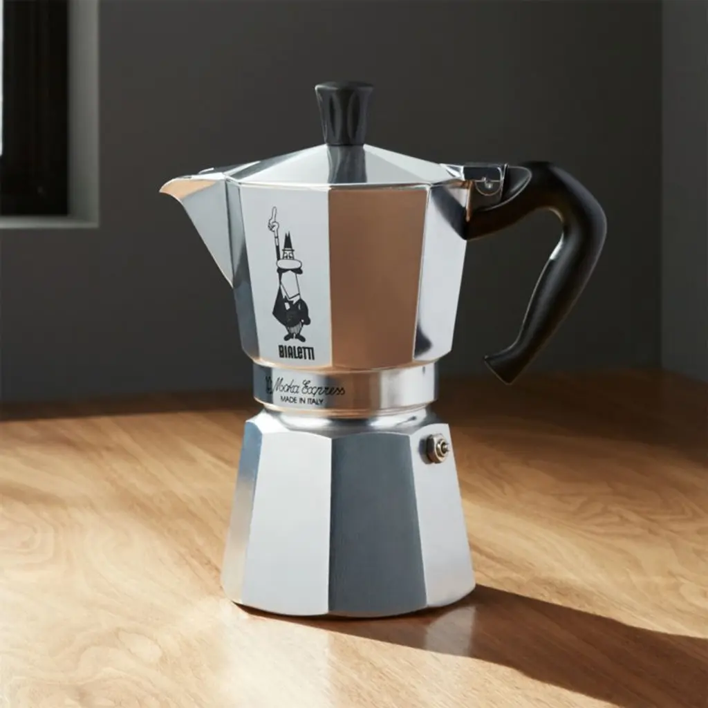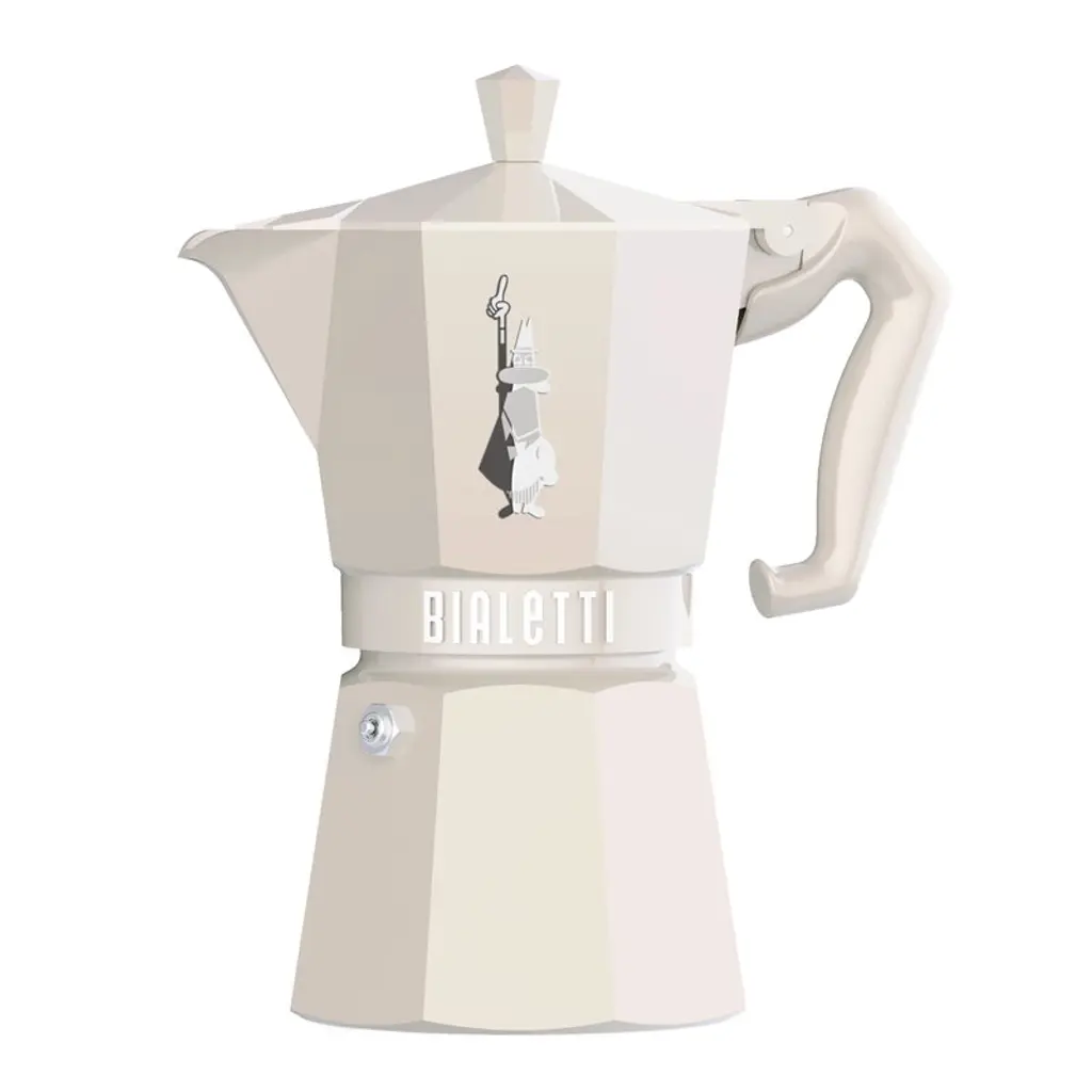 Simply ingenious, this time-honored Italian stovetop coffee maker is an espresso-lovers essential. Just fill the base with water and the filter with ground coffee or espresso, then place over low heat. Water is forced upward through the coffee, brewing three cups in minutes. The classic aluminum Moka potoriginally created in 1933is reimagined in this Mediterranean-inspired version with swirling designs in a bright blue-and-white palette.