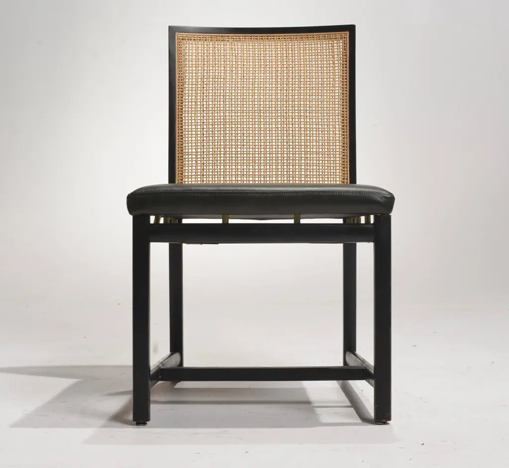Black Lacquer Cane Back Dining Chairs By Michael Taylor For Baker