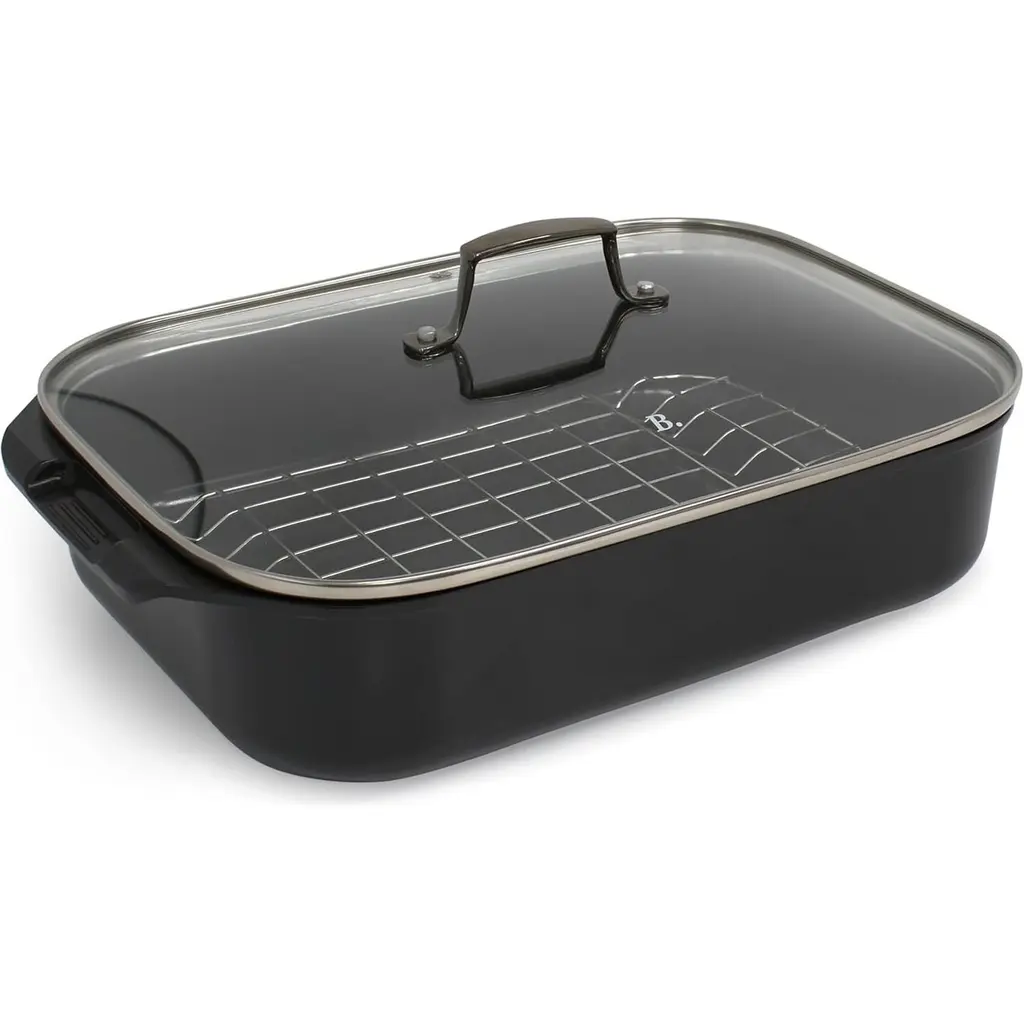 Blu. Cookware Roasting Pan With Lid And Roasting Rack, Non-Toxic, Non-Stick Ceramic, Pfa/pfoa-Free, Suitable For All Cooktops - Black