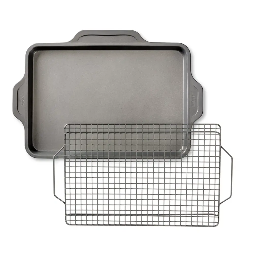 Description: Made from 100% recycled hard-anodized, forged aluminum, the Blu. Roaster Pan with Rack and Lid is designed for durablilty, without being heavy – for professional and home chefs alike. The Blu. roaster is coated with a revolutionary non-stick ceramic coating that we call Blu. Leaf Non-Stick. It is 100% PFAS free (including free from PFOS, PFAS and PTFE) resulting in a non-toxic, chemical-free cooking experience. Put simply, it’s a game-changer in the kitchen for more reasons than one. While the revolutionary non-stick surface makes cleaning easier than ever before, each pan comes with a bamboo cleaning brush to lift any thicker layers of fats and sauces. All Blu. cookware is suitable for all cooktops, including induction, and is dishwasher safe. Our Roaster with rack and lid will become your go-to roaster for Sunday roasts and baking healthy one-pan meals. Blu. – the conscious cookware for the conscious cook. What You Get: