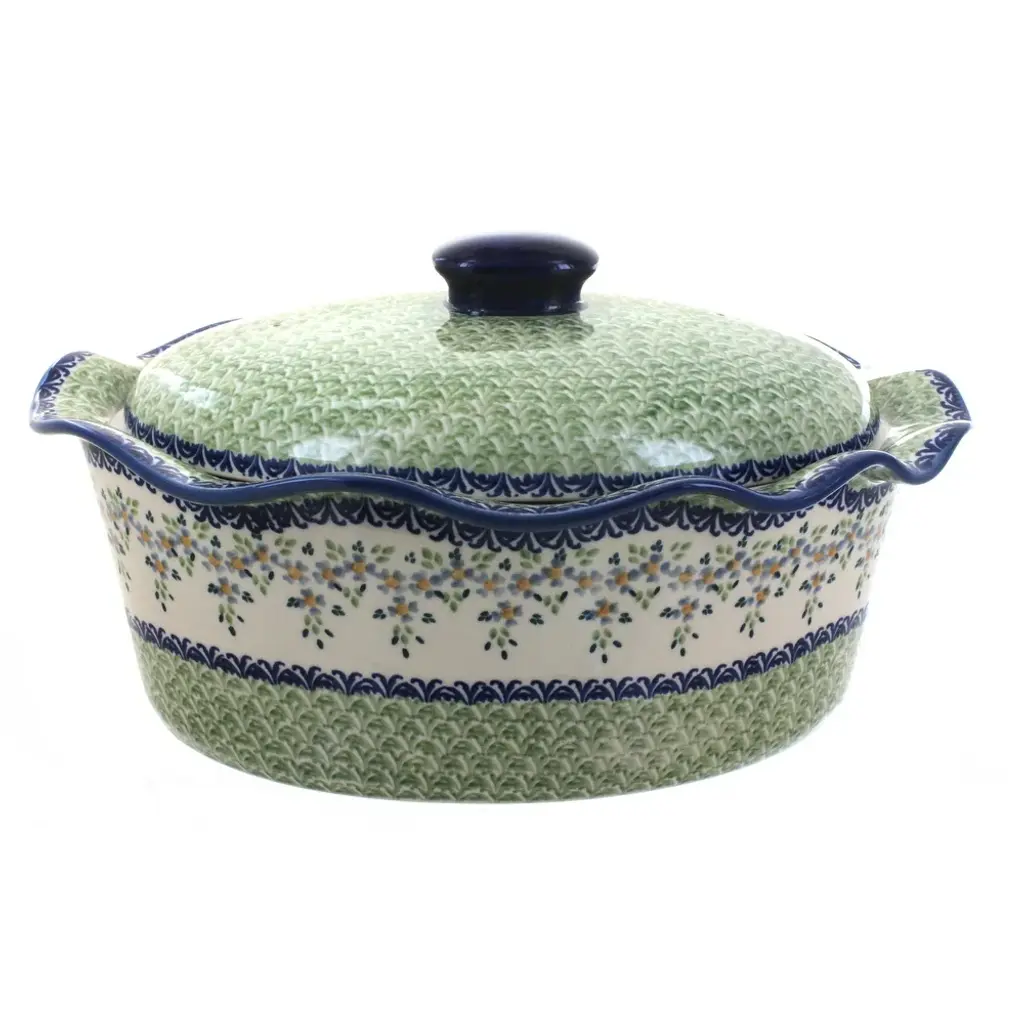 Blue Rose Polish Pottery Z137 Manufaktura Large Oval Baker With Lid - Tulip