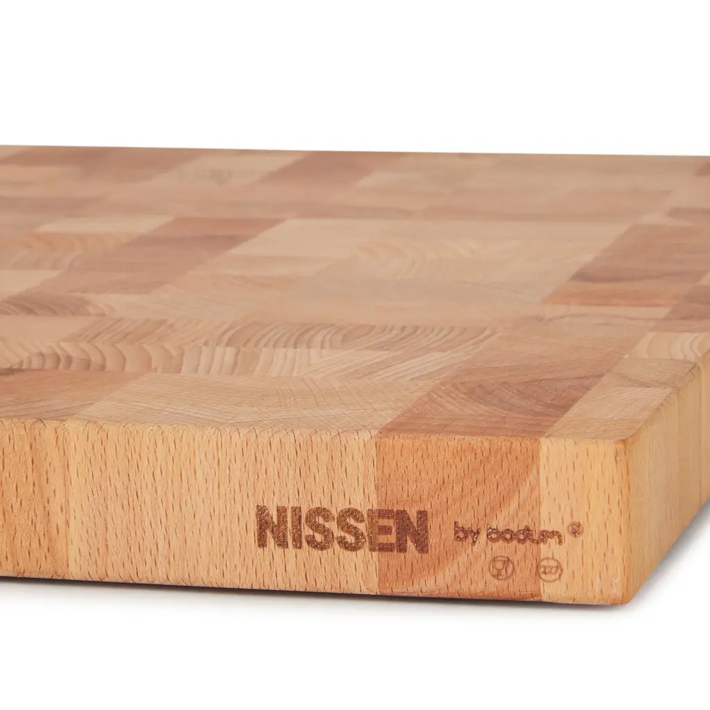 MoMA Exclusive: Looking for the ultimate wood cutting board? Your search ends now with the Bodum Nissen End-Grain Cutting Board. Crafted from resilient, long-lasting wood, it’s ready to tackle anything you throw at it. Plus, the stylish design makes it display-worthy, and it’s easy to store in cabinets or drawers. Just remember to hand-wash it after each use, dry them thoroughly, and give it some TLC with regular oiling and waxing. The Bodum Nissen End-Grain Cutting Board measures 1.25h x 15.75w x 15.75”d.