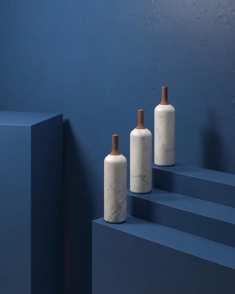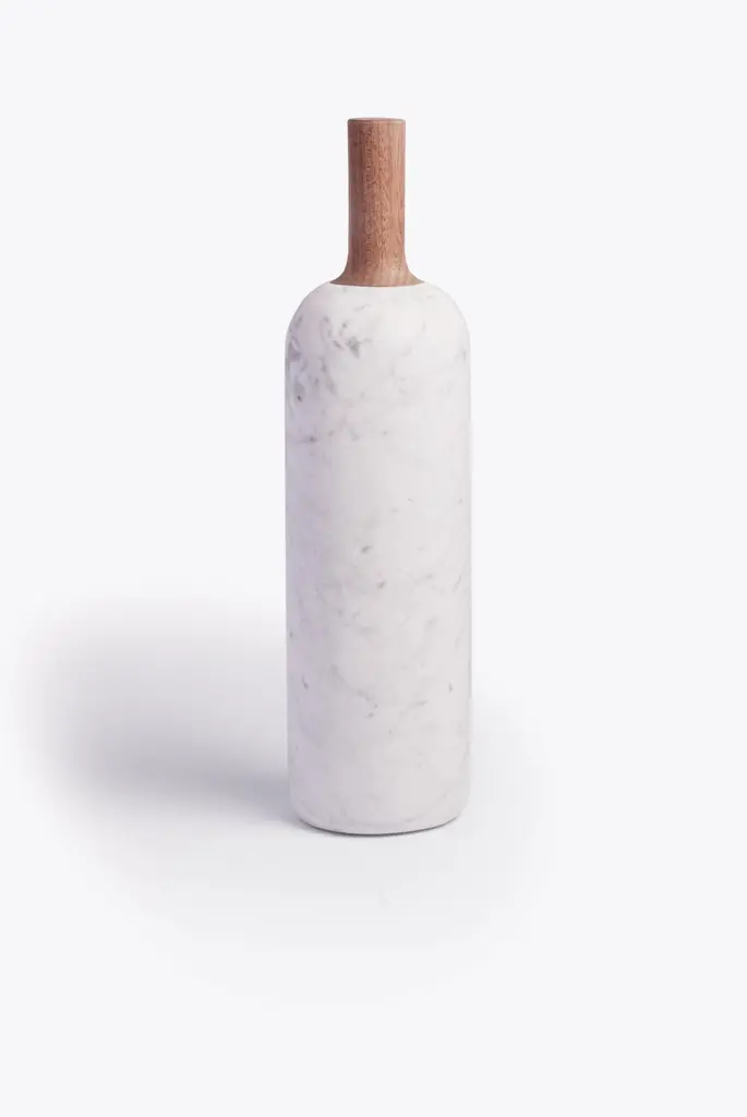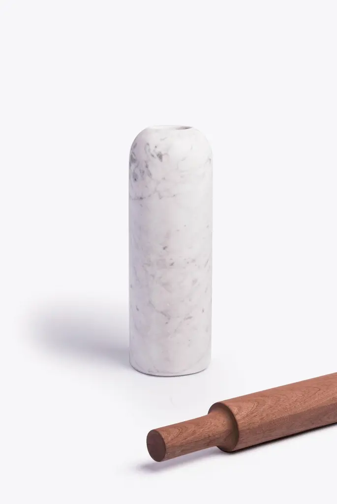 Bordolese rolling pin with case by Studio LievitoDimensions: D 10 x W 10 x H 38 cmMaterials: Bianco Carrara marble, Mahogany wood.Weight: 5.2 kgEvoking the silhouette of a classic glass bottle, this piece features an elegant combination of materials the slender wooden body of the rolling pin will slide elegantly in the white Carrara marble case after use.Studio Lievito is a design firm founded in 2010 by designers Laura Passalacqua, Francesco Taviani an Jacopo Volpi. Based in Florence, Studio Lievito stands out for its ability to delicately reinvent and redefine modern production techniques using traditional crafting methods. Each piece is meticolously handmade: with its collection Studio Lievito wants to promote a ‘slow design’ that subverts conventional decor norms by means of simple yet witty gestures and accurate detailing.
