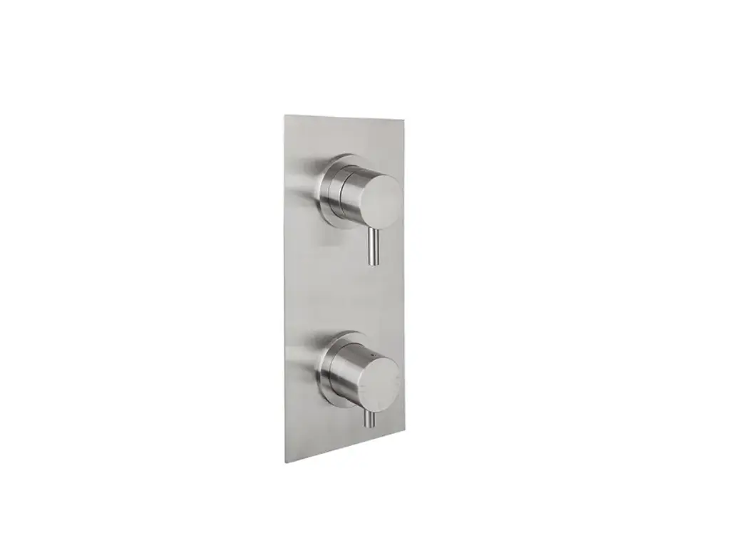 Box 3254 One-handle bath & shower mixer, concealed model, diverter with automatic return to bath positionMinimum required dynamic pressure: 0,5 barSupplied without spout or shower componentsThe Box line of single-lever mixertaps was a precursor of the high-tech and minimalist styles.Its design clearly reveals every function. The tube spout, thehousing containing the mechanisms, the control lever with the chamfered grip: every detail points to the simplicity of the manoeuvre required. The overall harmony of the unit gives this mixer tap a clean, essential and technological look. The exclusive adjustment system, which ensures total reliability, consist of two ceramic seats and a disc also in ceramic. A minimal friction area between the disc and the seats ensures soft and gentle movement. All the spouts are fitted with aerators which, by mixing air into the water, make the jet soft and silent.The diverters on the bath-shower mixers return the flow to the bath outlet when the tap is closed, so as to avoid any inconvenience when it is turned back on.