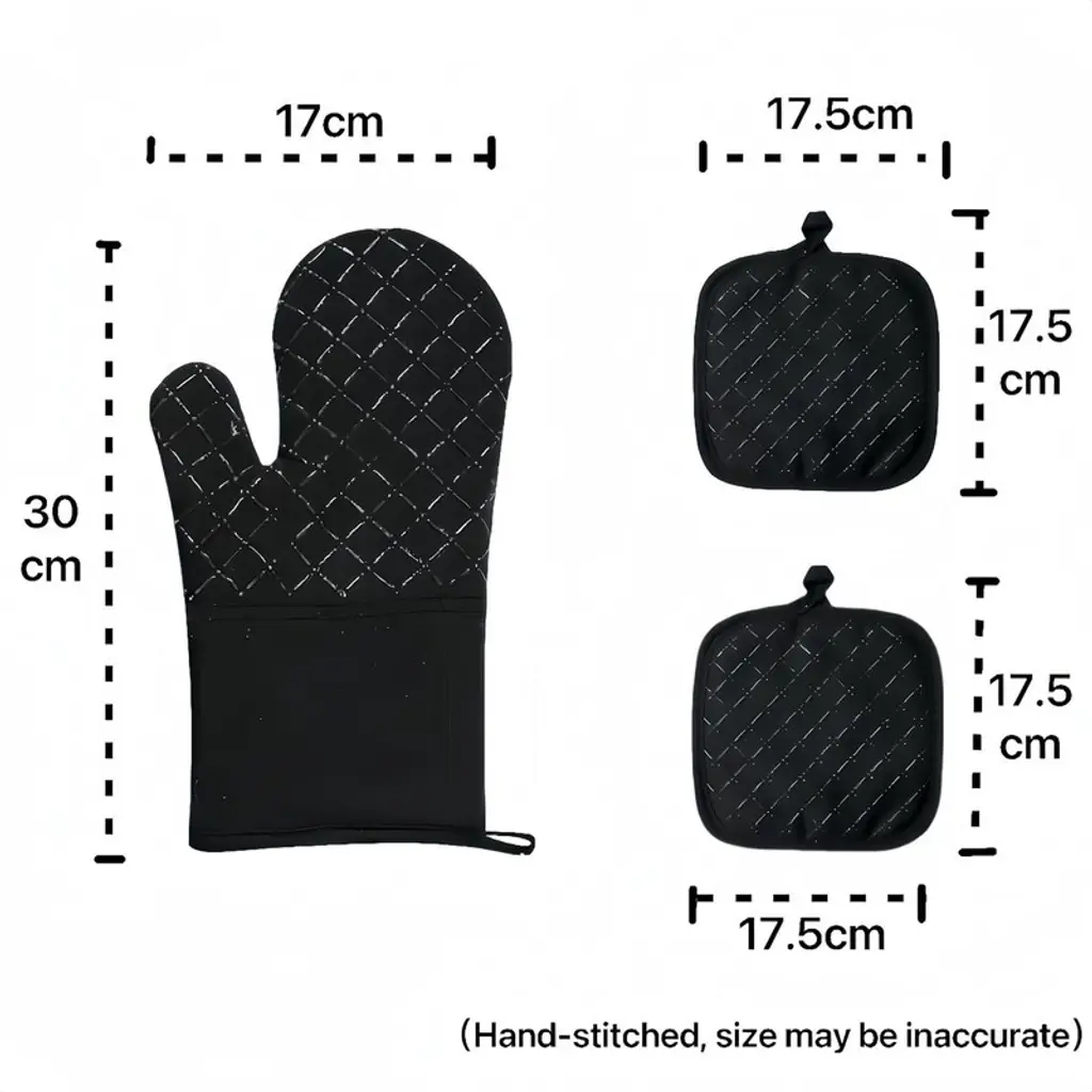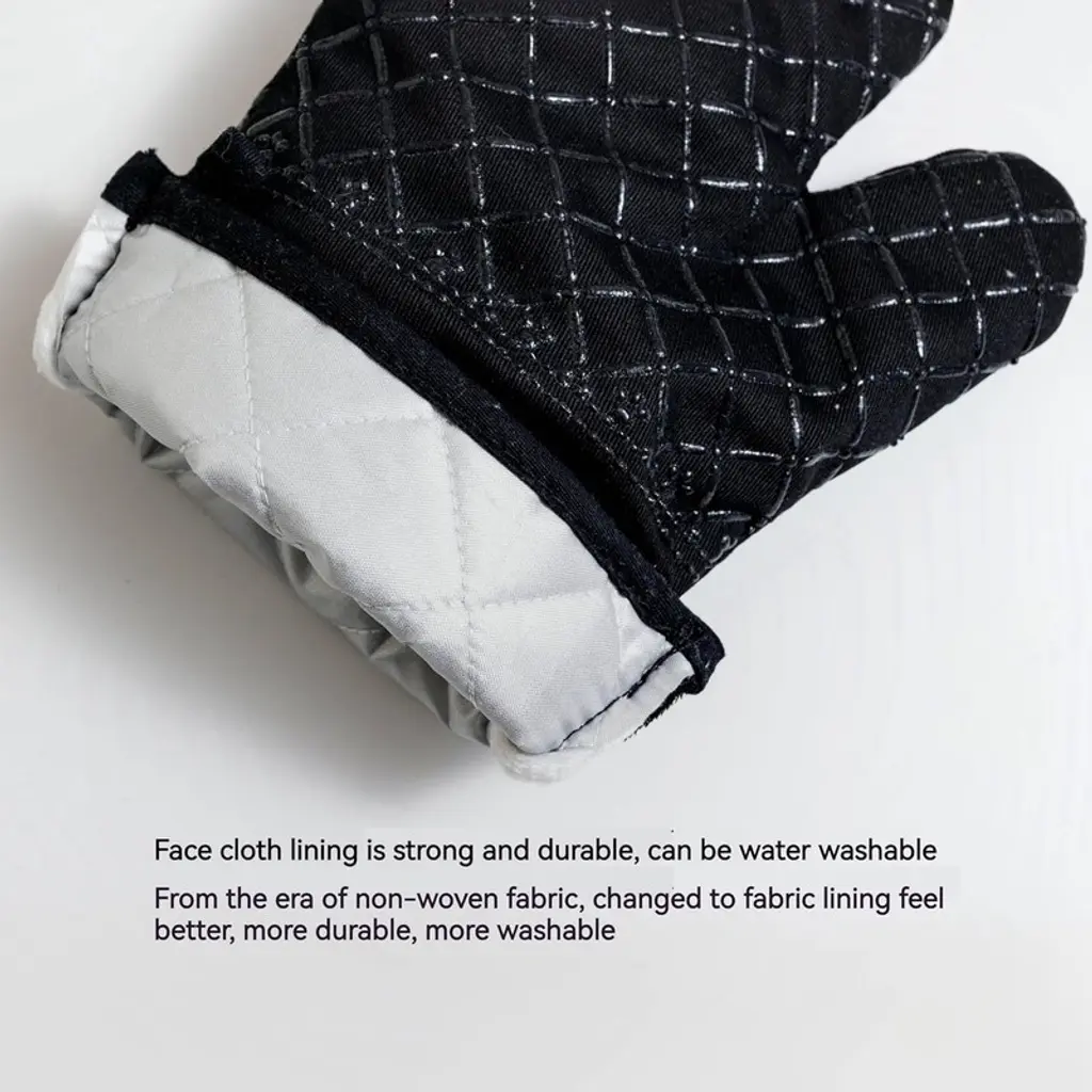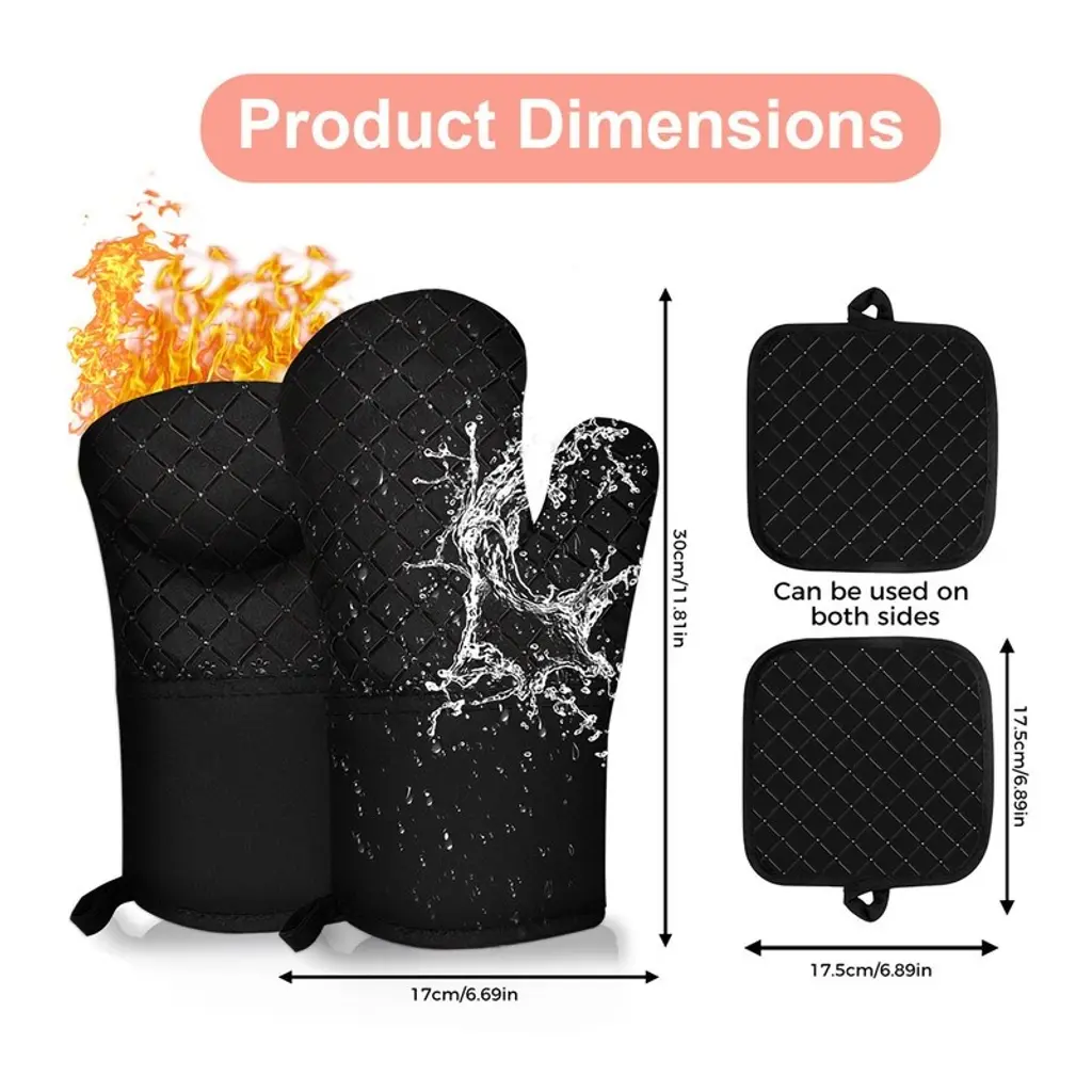 BRINJOY's 4-piece oven mitts and baking sheet rack set combines safety and functionality for a seamless baking experience. The extended-length oven mitts are crafted from heat-resistant silicone and soft cotton quilting, withstanding temperatures up to 500¡ãF (260¡ãC), while the non-slip surface ensures a secure grip on hot pans and trays. The included baking sheet racks feature a sturdy silicone coating, protecting countertops from heat damage and providing a stable resting place for hot sheets. Designed for both amateur bakers and culinary experts, this set offers practicality and style in a unified black finish.