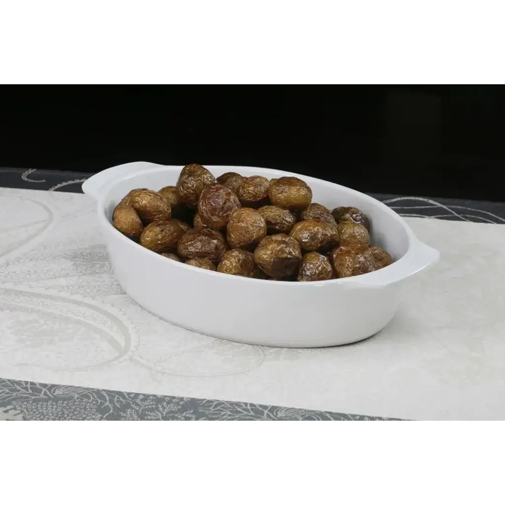 Casseroles, pasta dishes, roasted vegetables, desserts, and other dishes work well in this 3Qt oval roaster. Whether you're looking for a chic wedding gift, a lovely housewarming gift, or a delectable holiday treat, this roaster is certainly going to please any cooking enthusiast. It features a basic, classic style that is great for tabletop presentation.