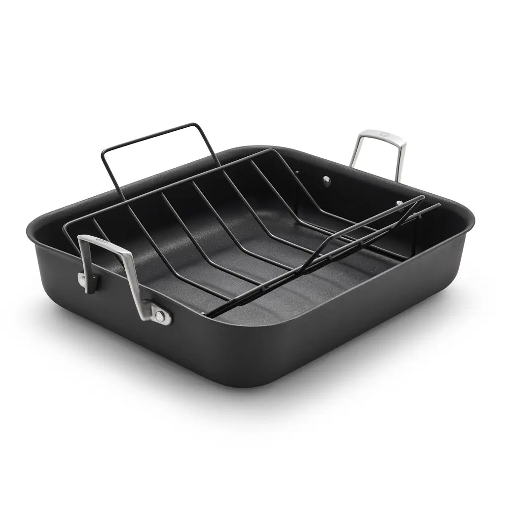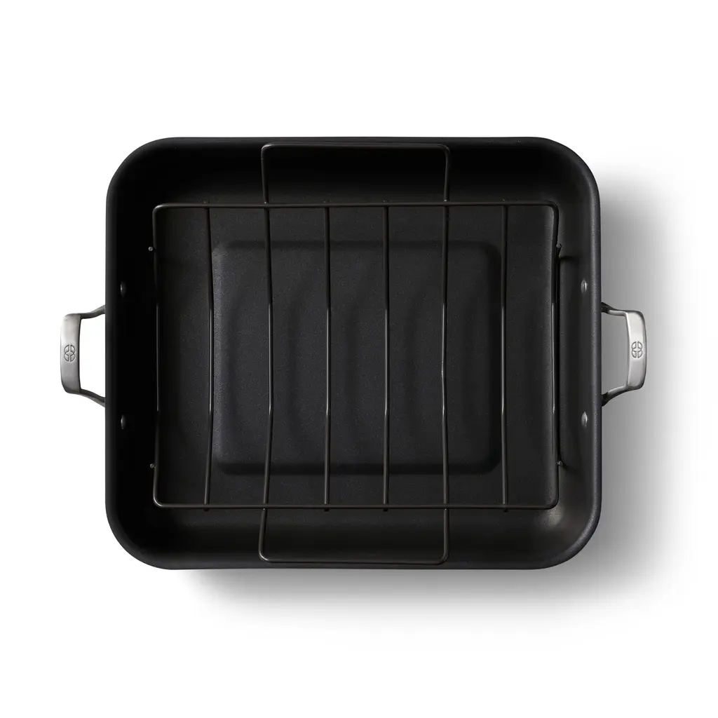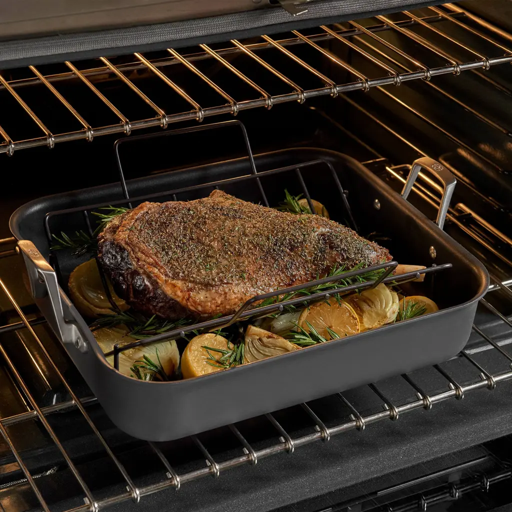 Featuring MineralShield nonstick technology, Calphalon Premier Hard-Anodized Nonstick Cookware is now 5x more durable than before when compared to the previous generation of Calphalon Classic. This nonstick roasting pan delivers superior long-lasting performance for effortless food release over and over again, so you can cook with confidence and serve your favorite roasts with ease. The 3-layer nonstick interior is made with some of the Earth's hardest minerals to withstand metal utensils and everyday use and the hard-anodized exterior is dishwasher-safe for easy cleanup. Calphalon Premier Hard-Anodized Cookware is oven-safe up to 450 degrees F, so the nonstick pots and pans can go from the stovetop into the oven for heating and cooking versatility. Elevate your cooking experience with Calphalon Premier, and enjoy exceptional performance with endless possibilities.
