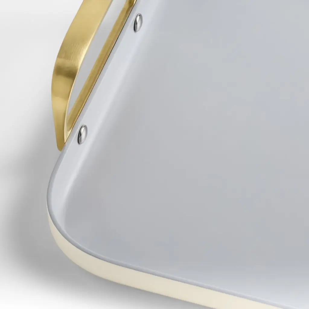 You'll be smitten with the minimalist design as well as the great performance of this double-burner griddle. Featuring a cream-hued exterior and gold-finished stainless steel handles, the double-burner pan is a joy to use. The non-stick ceramic coating provides superior non-stick performance, while the aluminum core conducts heat efficiently. Stretching across two burners, the grill pan offers plenty of space for pancakes and bacon or burgers and sauteed onions.