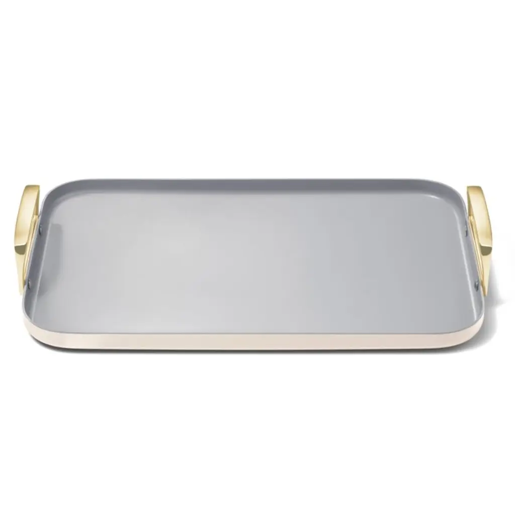 Caraway ® Cream Ceramic Non-Stick Double Burner Griddle With Gold Hardware