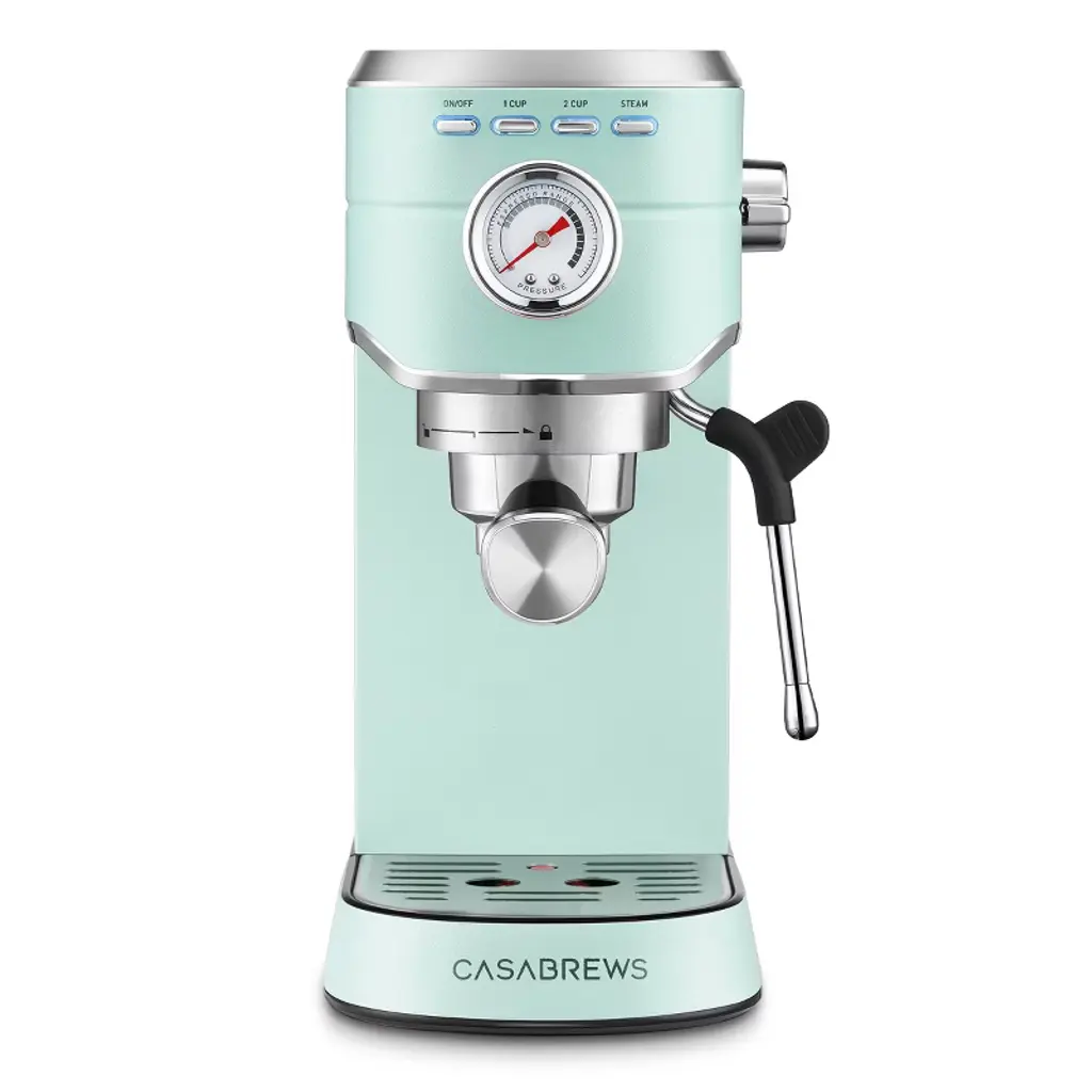 Discover the art of coffee craftsmanship with the CASABREWS CM5418™ Espresso Machine, your gateway to café-quality beverages in the comfort of your own kitchen.More than just an espresso maker, this versatile cappuccino and latte machine empowers you to transform everyday coffee moments into extraordinary rituals. The compact, elegant design of this coffee maker makes it a perfect addition to any kitchen or workspace, offering both sophistication and practicality to coffee lovers everywhere.Experience the richness of expertly brewed espresso, thanks to its 20-bar Italian pressure system and powerful 1350W boiler, which delivers smooth, aromatic extractions with every cup. Unleash your creativity with the steam wand, effortlessly crafting artistic, velvety microfoam milk for lattes, cappuccinos, and more.With precise temperature control and adjustable shot volumes, this coffee machine empowers you to craft coffee tailored to your taste, blending professional-grade quality with effortless usability. Available in five stunning colors, the CM5418 combines artistry and utility, elevating your daily coffee ritual to new heights—whether you're crafting a morning pick-me-up or preparing a celebratory cappuccino for friends.Crafted for coffee enthusiasts who value time and excellence, this is more than a coffee machine—it's your tool to brew meaningful moments, one perfect cup at a time.