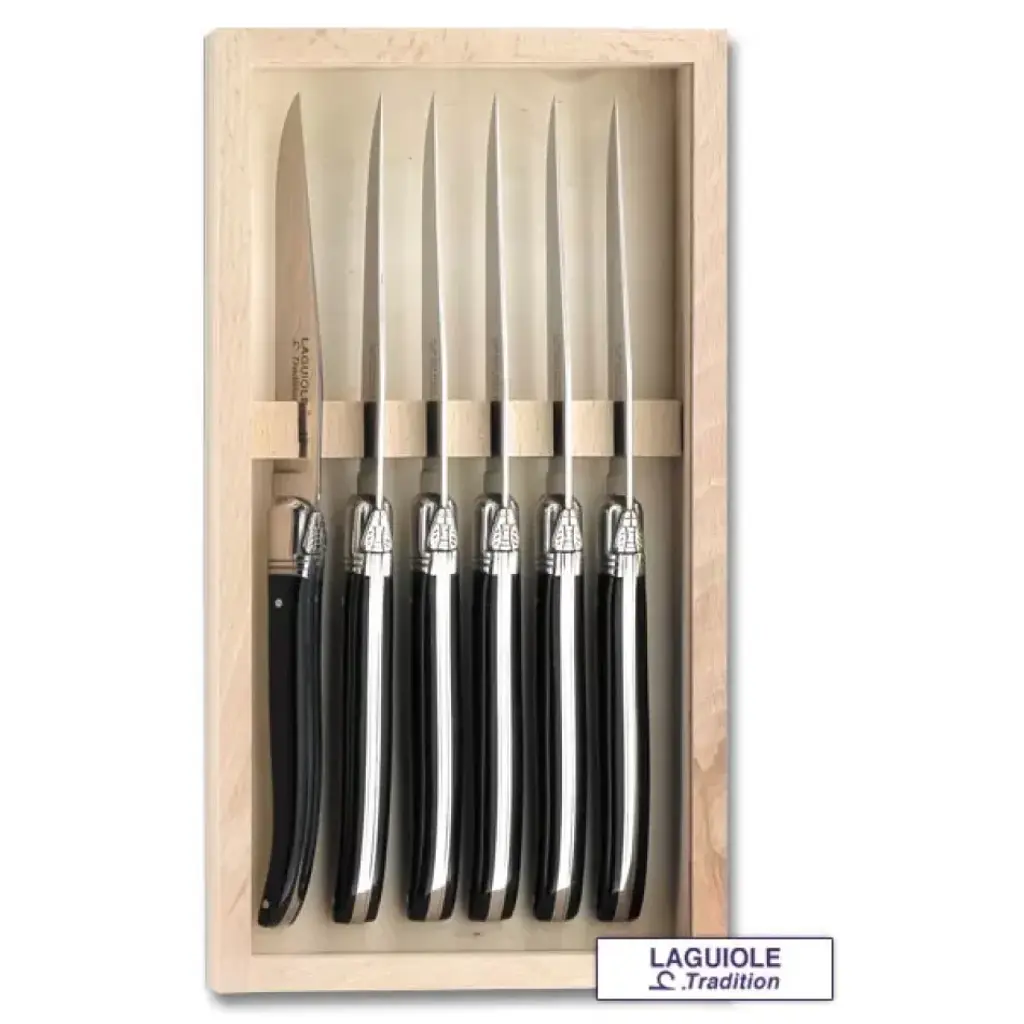Alain Saint Joanis is a family-owned company that has been creating and manufacturing fine flatware in the purest tradition of French cutlery since 1876. These top-of-the-line collections are made with the finest quality silverplate and 18/10 stainless steel, with handles handcrafted from authentic, raw materials such as exotic woods, resins and enamels. All Alain Saint Joanis flatware is hand-assembled and hand-polished in France, and is dishwasher safe. Five-piece setting includes dinner knife, dinner fork, salad fork, soup spoon, and tea spoon.