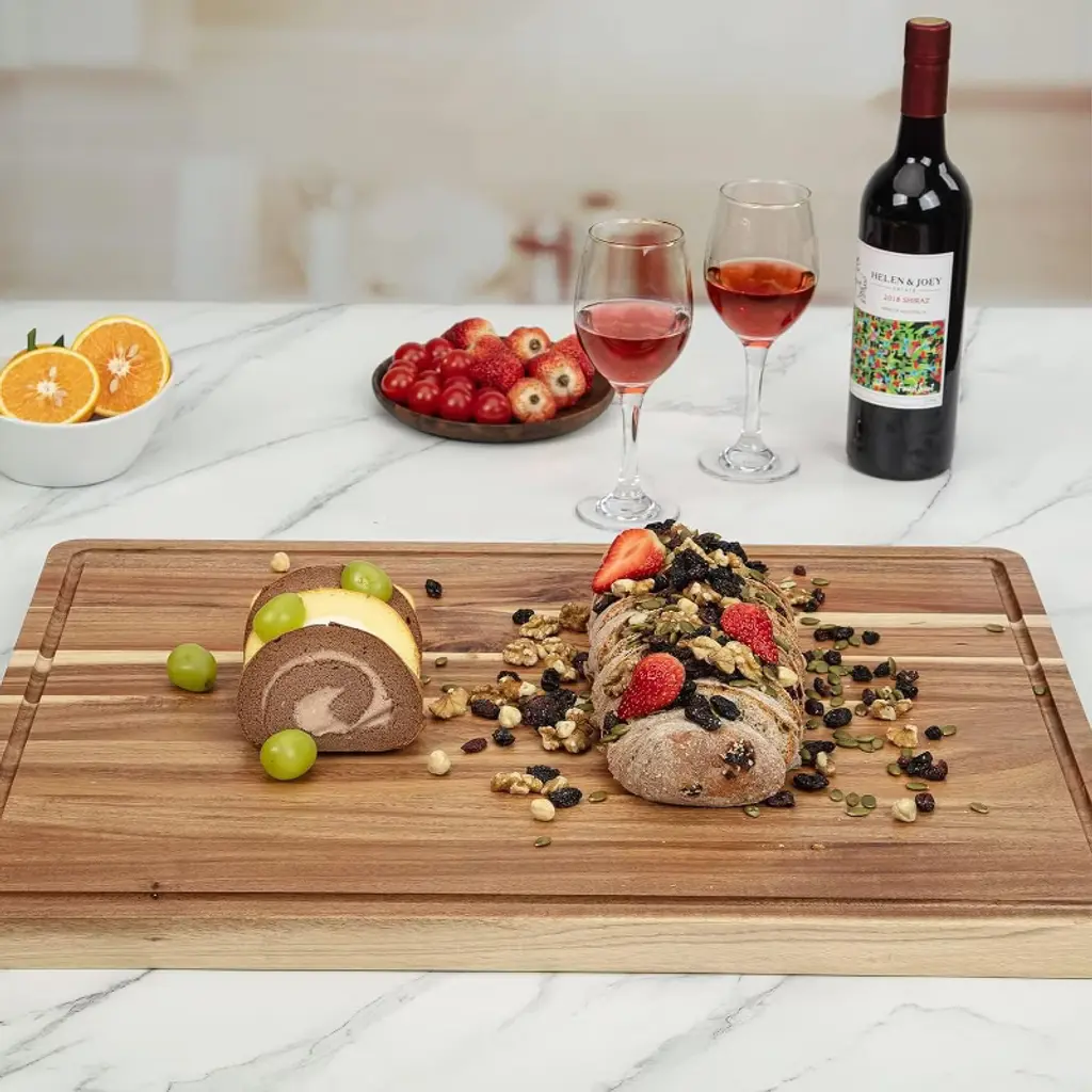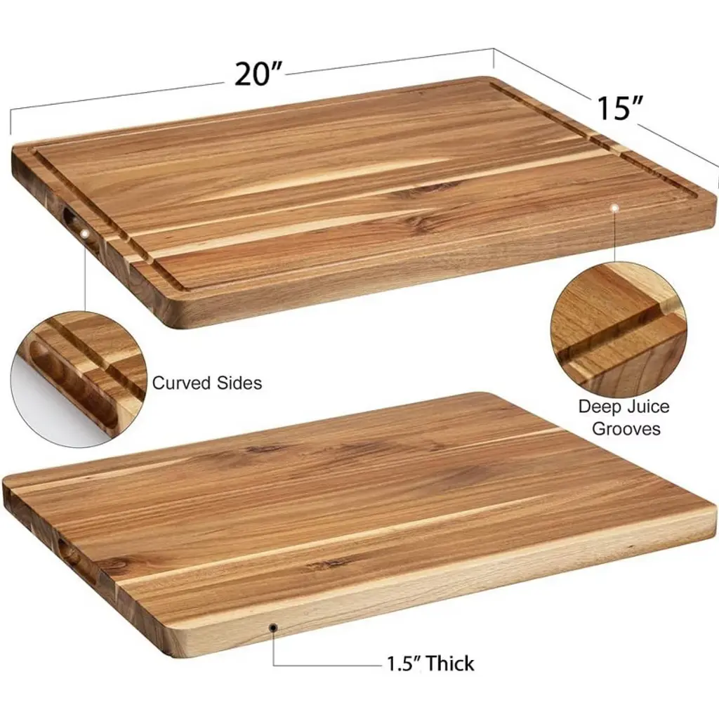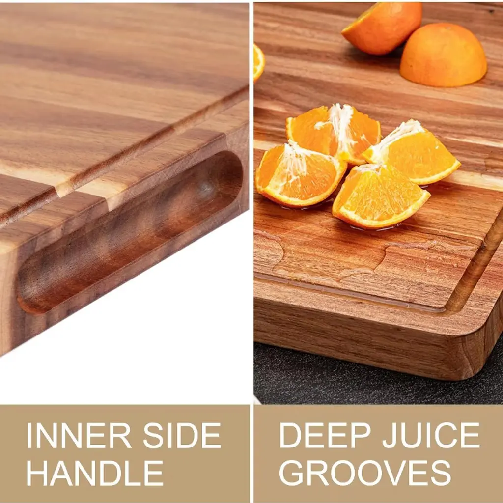 Cheese Charcuterie Board For Kitchen, Extra Large Cutting Board With Side Handles & Juice Grooves, Reversible Wooden Chopping Board, 20 X 15 In