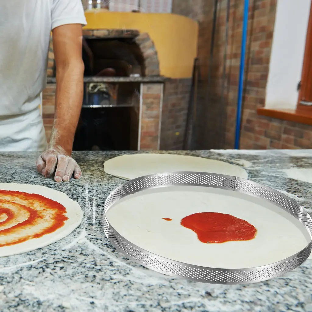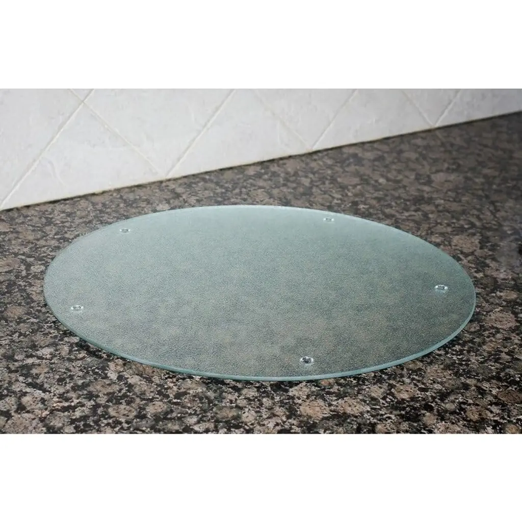 This large 16" round glass board can be used as a cutting board or a counter saver. It is made of toughened, tempered, scratch-resistant glass. The rubber feet secure it to your countertop. The clear, textured surface keeps your countertop safe while still showing the design. Dishwasher safe. Round cutting board is perfect for any restaurant, bar, buffet, or eatery that requires a rounded cutting area.