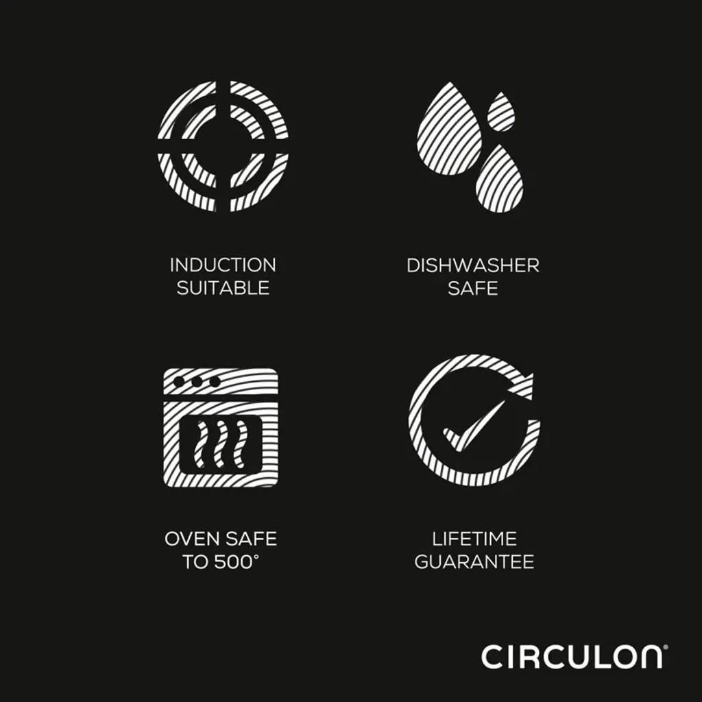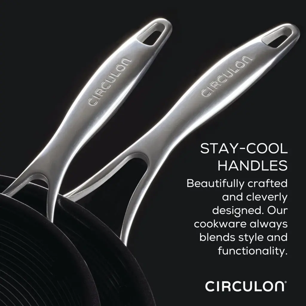Cook from scratch without the scratches. Introducing Circulon SteelShield. The strength and beauty of steel with a hybrid surface crafted for durability. Circulon's SteelShield(tm) technology features elevated steel rings to protect the nonstick surfaces (and extends up the walls of the frying pans), so you never have to worry about scratched nonstick again. Our unique, easy-to-clean flat rivet system provides an amazingly smooth cooking surface, and tri-ply clad construction means Circulon C-Series pots and pans heat up quickly to reduce hot spots on any cooktop, including induction. Featuring a stylish polished stainless steel exterior and stay-cool handles, Circulon SteelShield pots and pans are dishwasher safe for easy cleanup and oven safe up to 500°F for cooking a wide range of recipes. Plus, SteelShield is completely metal utensil safe.