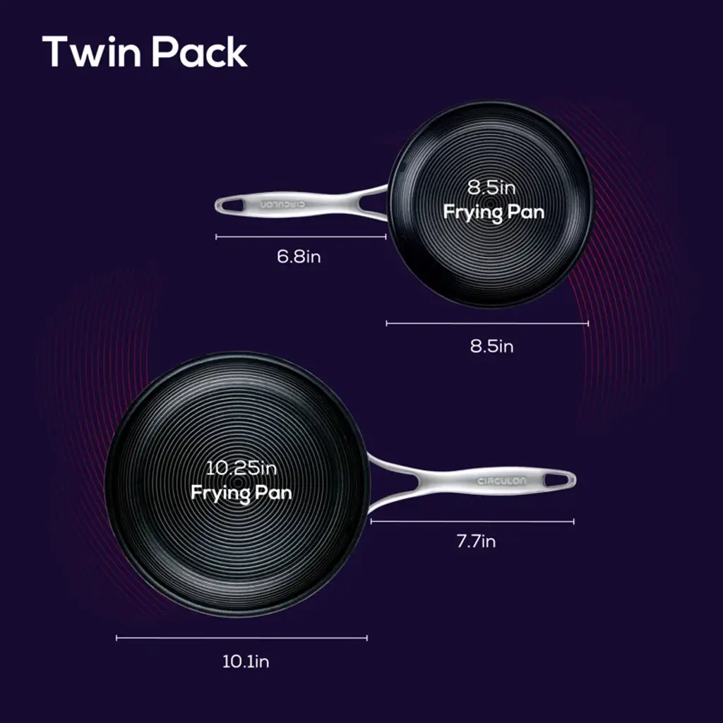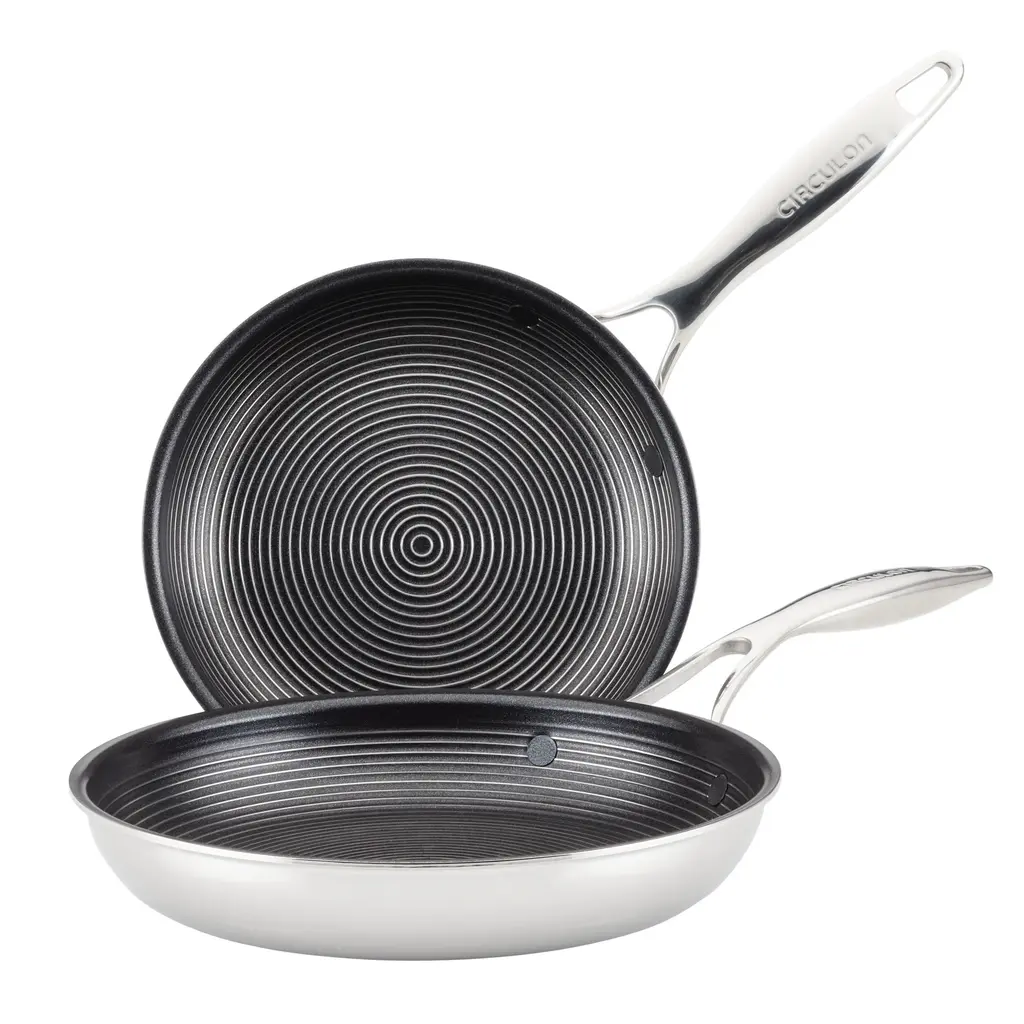 Circulon Clad Stainless Steel Frying Pans With Hybrid Steelshield, 2 Piece, Silver
