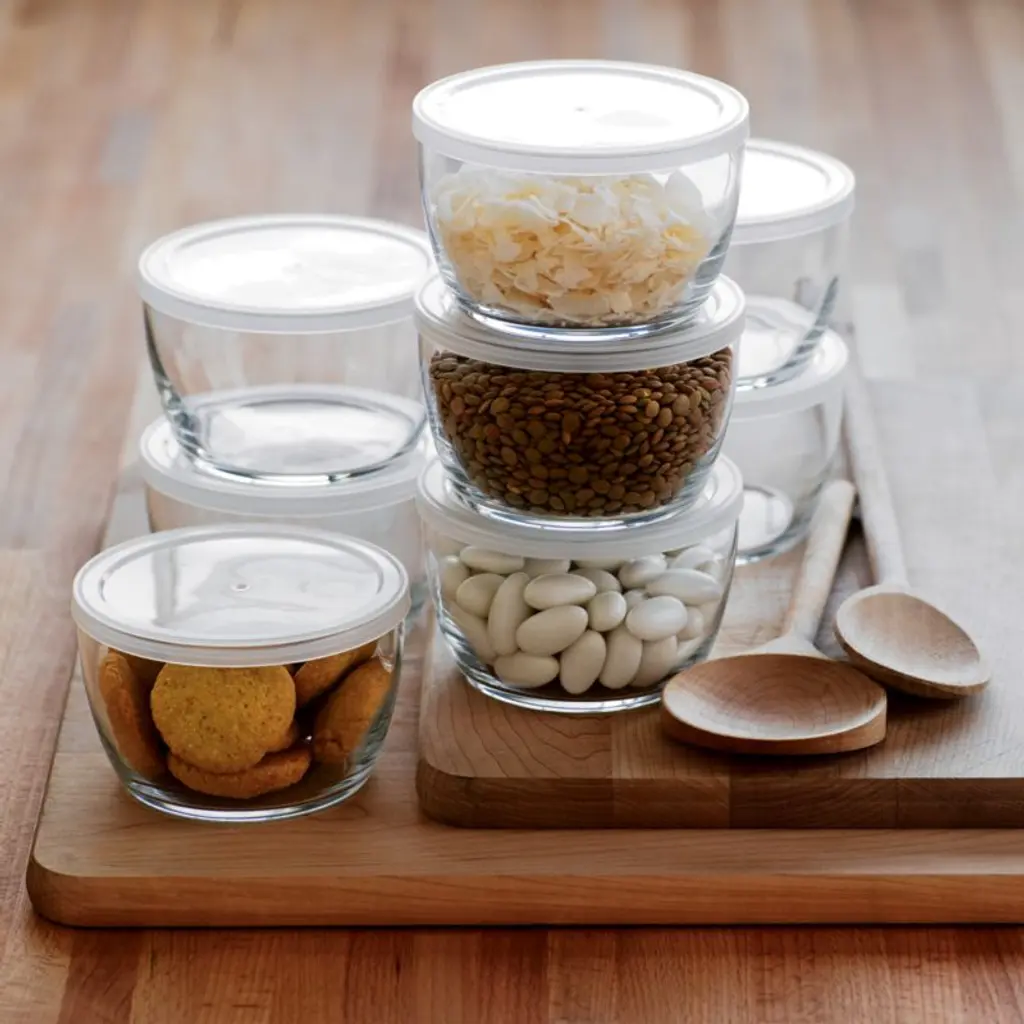 Staple ingredients of a well-stocked kitchen. Stackable and perfectly portable, these pint-sized, clear glass bowls are ideal for storing and transporting leftovers.We've got 7 steps to a more organized pantry.
