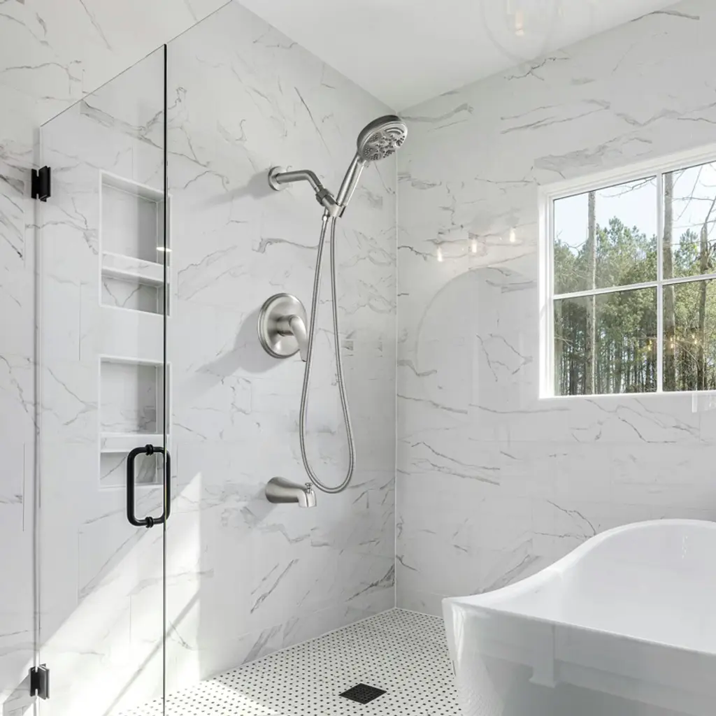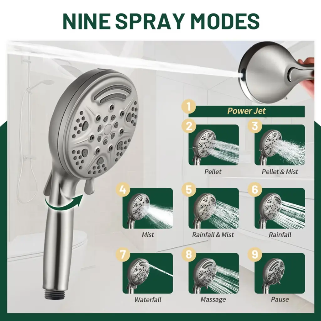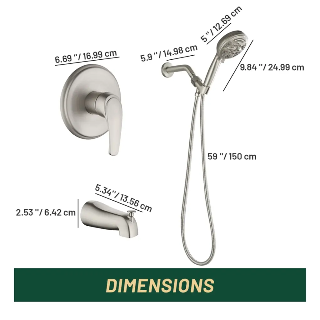Cobbe Bathroom Shower Mixer Set With 9-settings Hand Shower And Tub Spout Single Handle Wall Mounted Shower Kit Brushed Nickel Valve Included