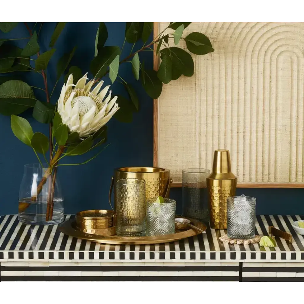 Conway, an all-metal barware collection, features hammered stainless steel details in antique brass or shiny nickel finishes. Blue Pheasant's products are handmade with care by artisans using natural materials. They are not mass produced, so variation between products should be expected, and this is why we love them! It is these irregularities that makes Blue Pheasant what it is—a special brand whose collections are distinctly handmade, full of charm and originality you’ll never find in machine-made products.