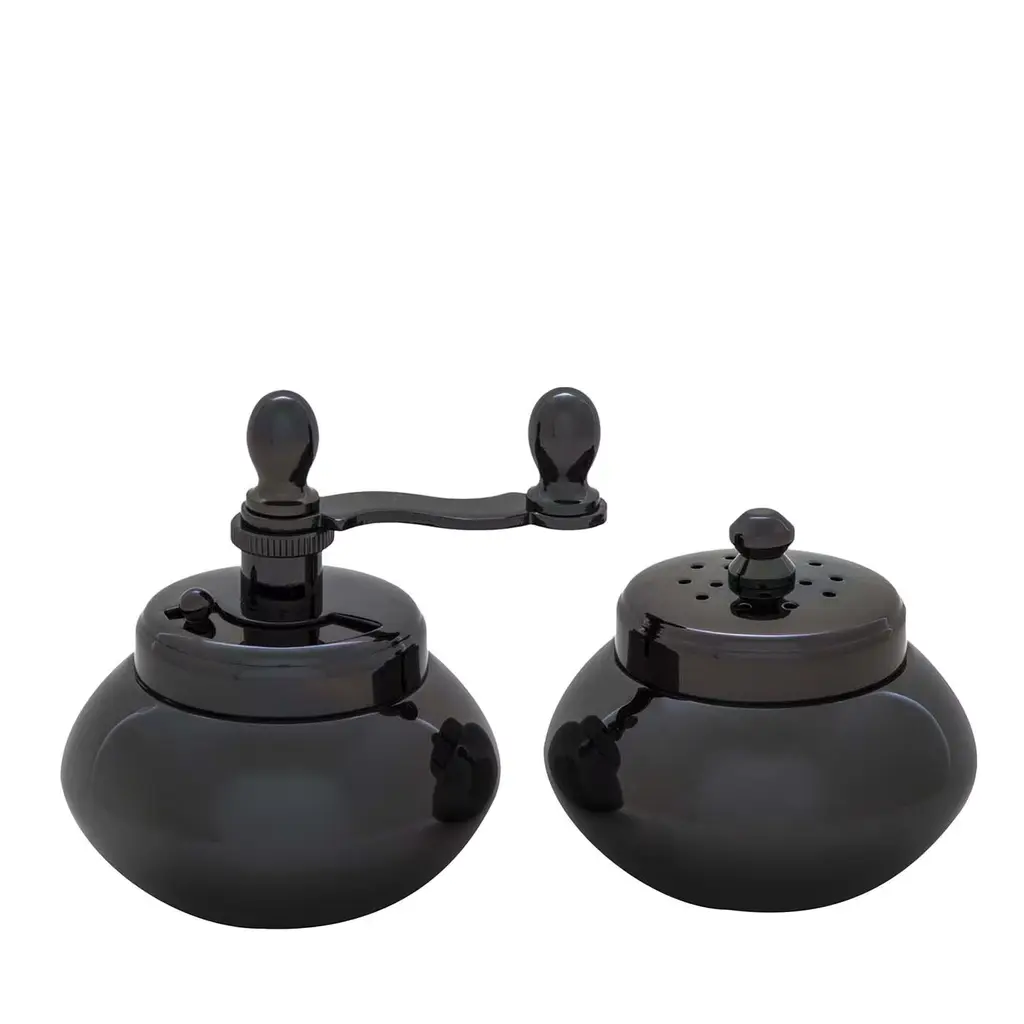 An original and stylish duo, the pepper mill is made from polished, painted, copper plated, brass with a tempered steel grinder and is designed for use with dry black, white and green peppercorns. Easy to use and refill when required, it perfectly matches up with the salt shaker that is also refillable by unscrewing the lid.