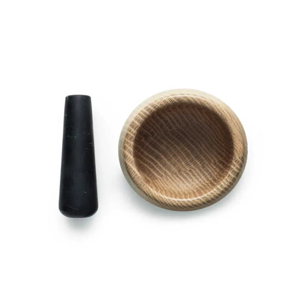 The Craft Mortar and Pestle is made of exclusive and durable natural materials. The mortar is solid oak and pestle is made of robust marble. The shape of the pestle ensures a comfortable grip when using it. The Craft kitchen tool series is designed by Simon Legald.