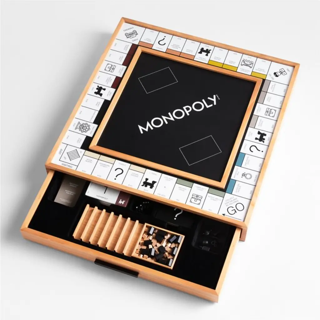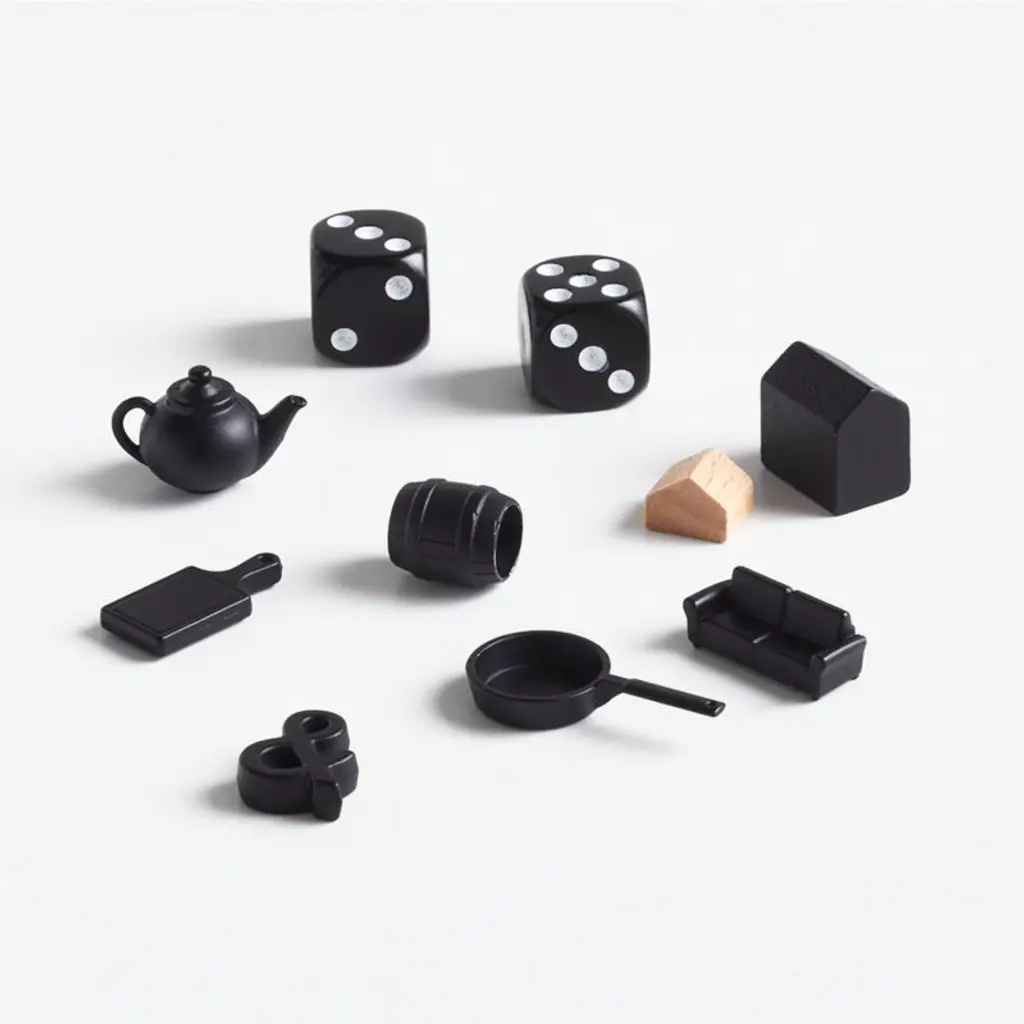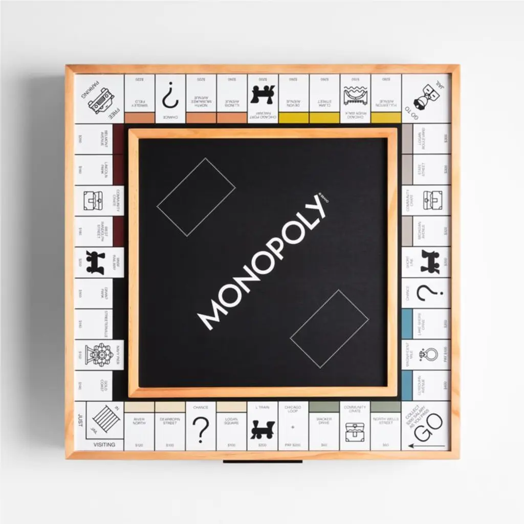 The deluxe Crate & Barrel edition of Monopoly is as thoughtfully designed and beautifully built as the iconic products that it features. The shiny black game pieces include some of our favorite time-tested staplesteapot, cast iron skillet, cutting board and sofaas well as a charming ampersand and, of course, a barrel. Build houses and hotels as you move around the Chicago-themed board, from Navy Pier to the Magnificent Mile to North Wells Street where the first Crate & Barrel store was located. All game parts store neatly in the built-in drawer so you can keep the modern black, white and wood board game on display and ready for play. Our exclusive iteration of this classic game is an heirloom-quality must-have for both Monopoly collectors and Crate & Barrel enthusiasts.