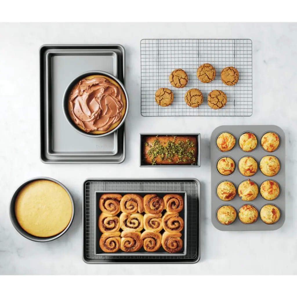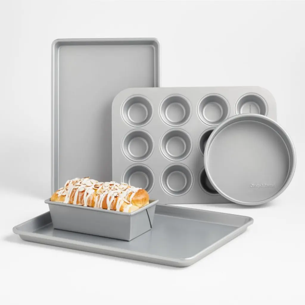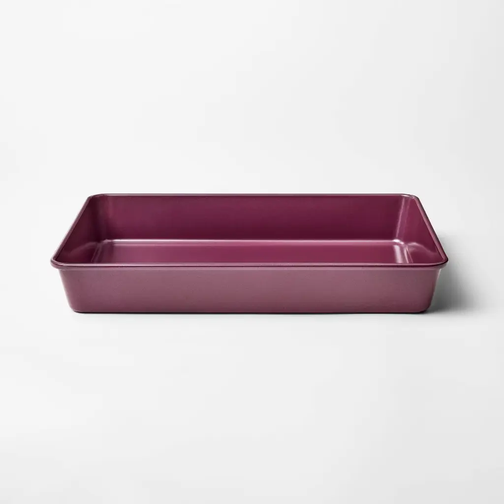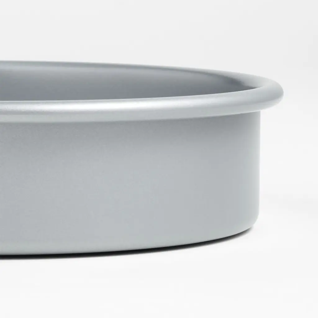 Super durable, lighter than cast iron and exclusively ours. Ideal for layer cakes or cinnamon rolls, our silver cake pan is part of our exclusive bakeware collection that takes its cue from professional kitchens. Made of carbon steelan alloy of 99% iron and 1% carbon that's nearly indestructiblethe round cake pan heats quickly and maintains consistent temperatures for perfectly baked foods. A double layer of silicone-based non-stick coating ensures easy release and quick cleanup.