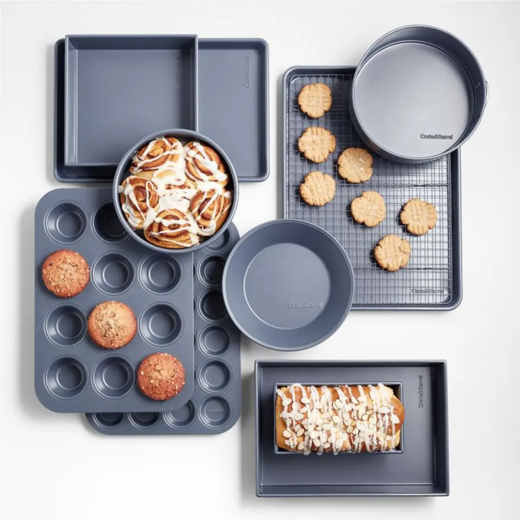 Super durable, lighter than cast iron and oh, that gorgeous unexpected slate blue. Ideal for cheesecake, tortes and Charlotte cakes, our slate blue springform pan is part of our exclusive bakeware collection that takes its cue from professional kitchens. Made of carbon steelan alloy of 99% iron and 1% carbon that's nearly indestructiblethe springform pan heats quickly and maintains consistent temperatures for perfectly baked foods. The pan features an easy-release latch and a double layer of silicone-based non-stick coating that ensures easy release and quick cleanup.View all "The Kitchen by Crate" collection