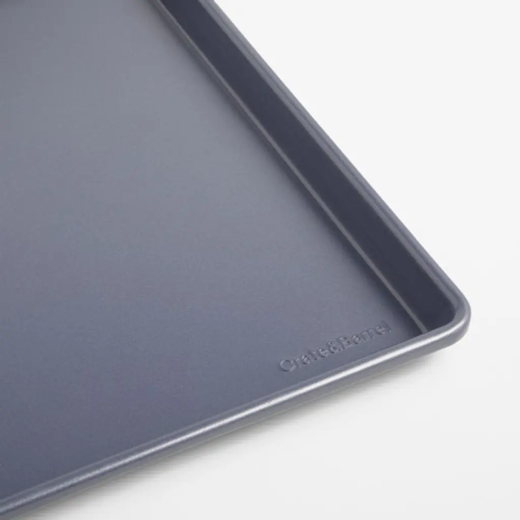 Super durable, lighter than cast iron and oh, that gorgeous unexpected slate blue. Ideal for new homeowners or couples starting out, this slate blue set gathers together bakeware from our exclusive collection that takes its cue from professional kitchens. Made of carbon steelan alloy of 99% iron and 1% carbon that's nearly indestructiblethe pans heat quickly and maintain consistent temperatures for perfectly baked foods. A double layer of silicone-based non-stick coating ensures easy release and quick cleanup.View all "The Kitchen by Crate" collection