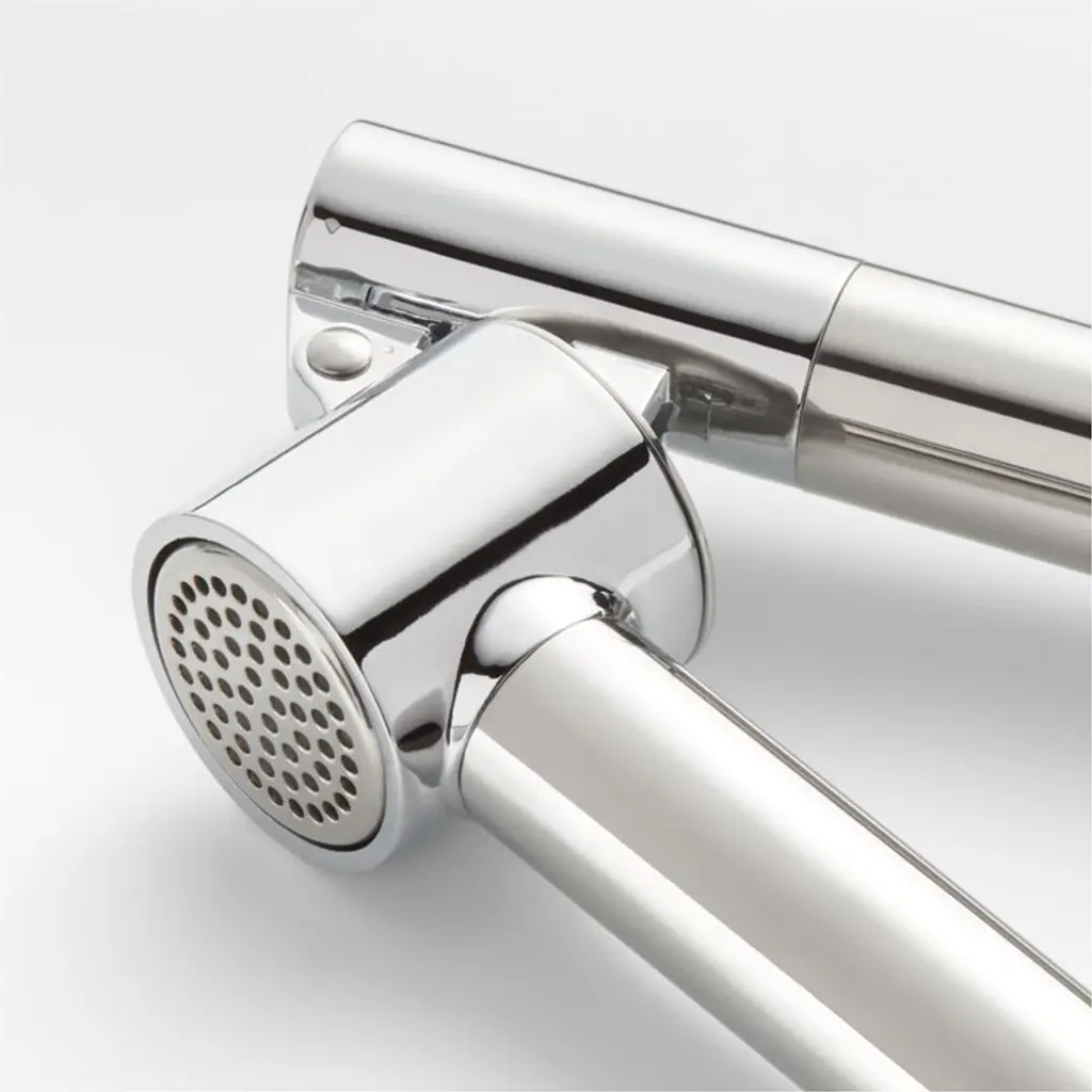 Mince garlic for garlic bread, hummus and smashed potatoes with ease using our signature garlic press. Eliminating the need for peeling, the dishwasher-safe tool makes short work of cloves. Stainless steel and die-cast zinc shape the sleek tool accented with refined beveled edges that finish the handles with dynamic detail. Our exclusive Crate & Barrel kitchen collection makes for a well-outfitted workspace that's up to any cooking challenge.Direct from our design team to your kitchen, the sophisticated assortment in our signature The Kitchen by Crate line combines beautiful simplicity and peerless performance. From initial sketches to rigorous testing, every expertly designed product in this kitchen collection meets our standards, and yours.View all "The Kitchen by Crate" collection