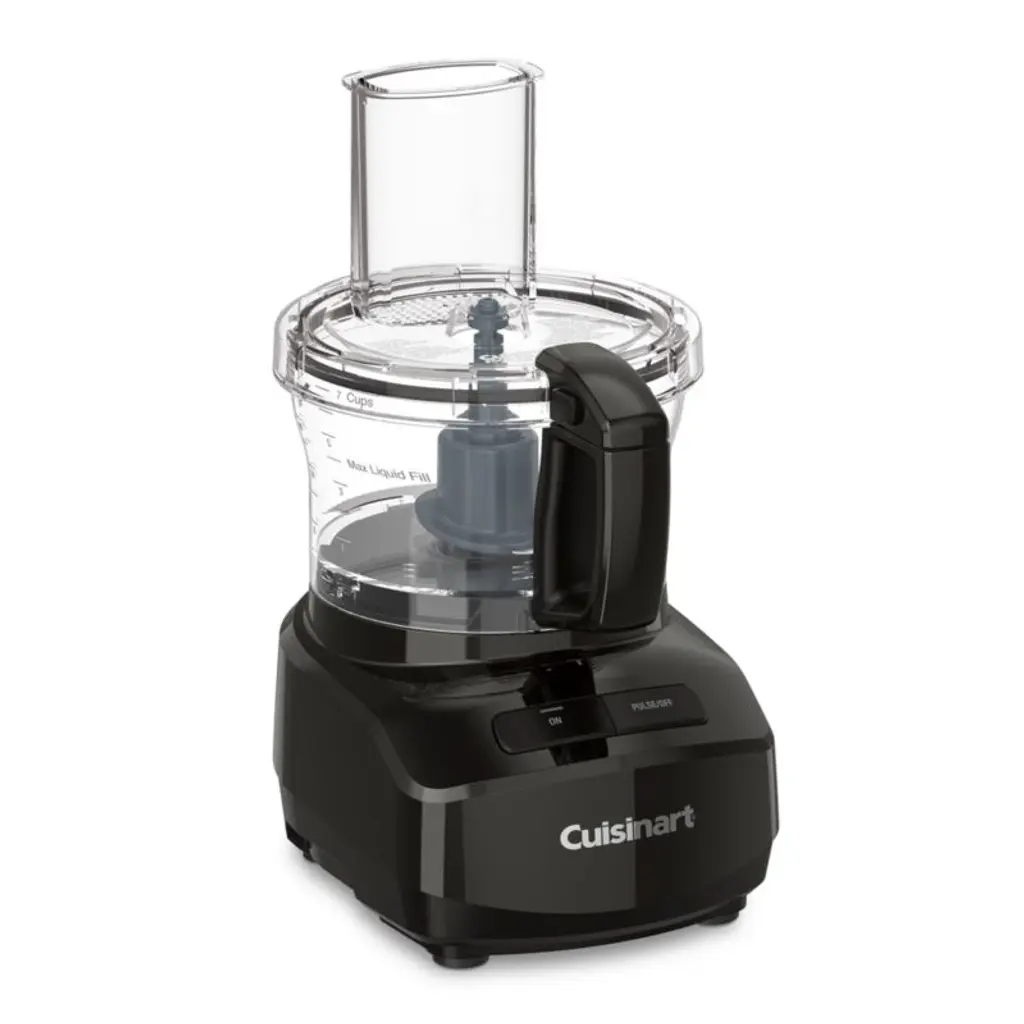 This kitchen workhorse speeds along prep and cooking, with a powerful motor for making quick meals, weeknight dinners or weekend celebrations. With a small countertop footprint in deep black, the processor features a work bowl that can accommodate generous batches of salsa, hummus, bread dough or slaw. The reversible slicing disc, reversible shredding disc and multi-purpose blade nest together in a removable storage hub. Simple controls and a sleek design streamline operation in this versatile food processor.Cuisinart has been creating inventive and accessible kitchen appliances, cookware and accessories for over 50 years.