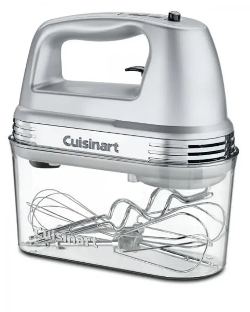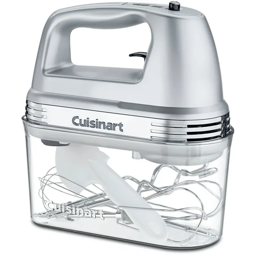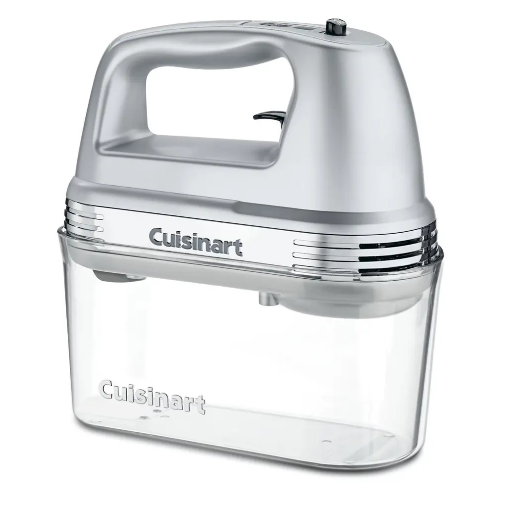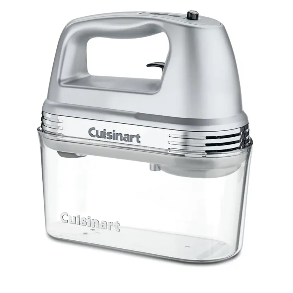 Introducing a hand mixer that's as easy to put away as it is to operate! The Cuisinart Power Advantage Plus 9-Speed Hand Mixer performs any task a recipe calls for, and then tucks into its own storage case! Once it's mixed heavy batters, whipped up fluffy meringues and kneaded homemade bread dough, just clean it up and put it away. Extra-long beaters, chef's whisk, and dough hooks fit into a clear case, and the mixer snaps on top. Plenty of power, perfect control, and compact storage. That's a mixer anyone can love!