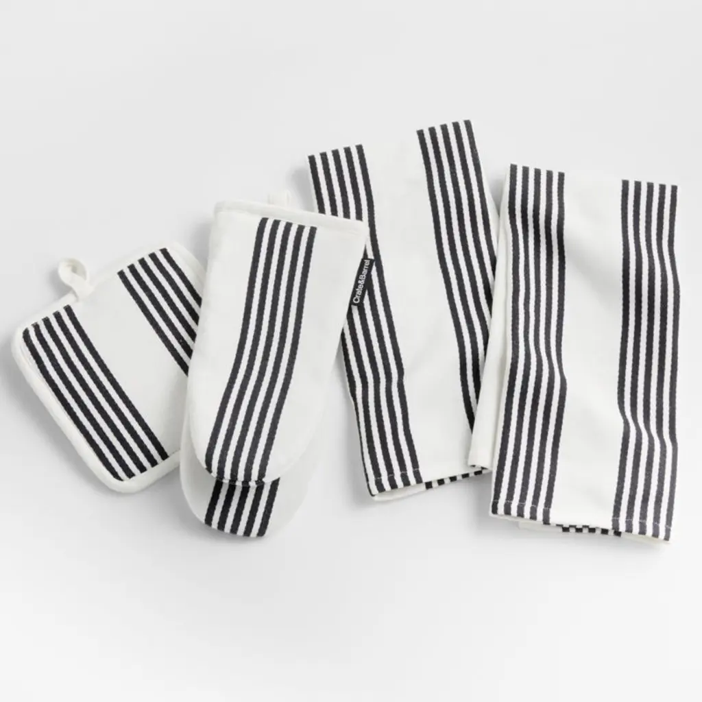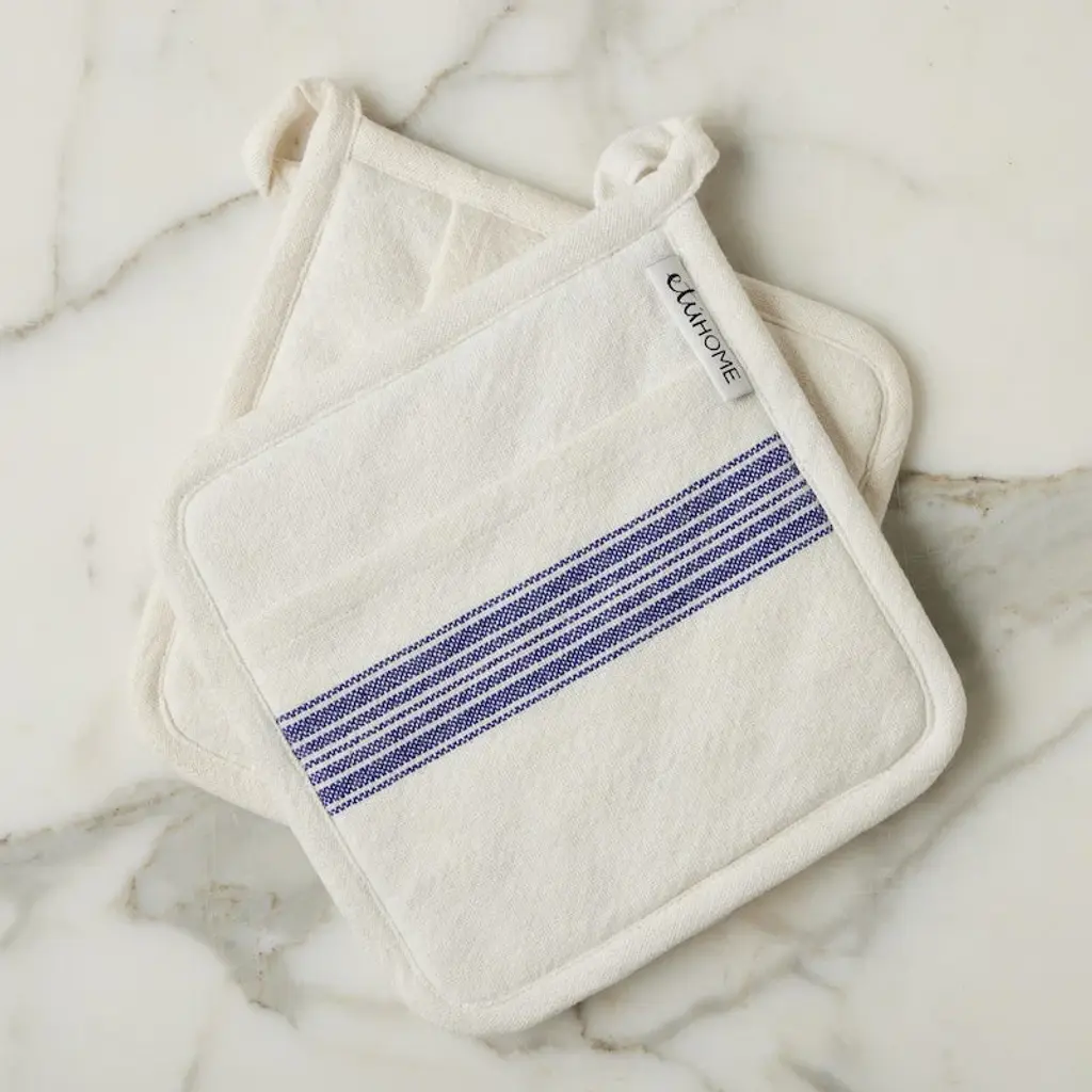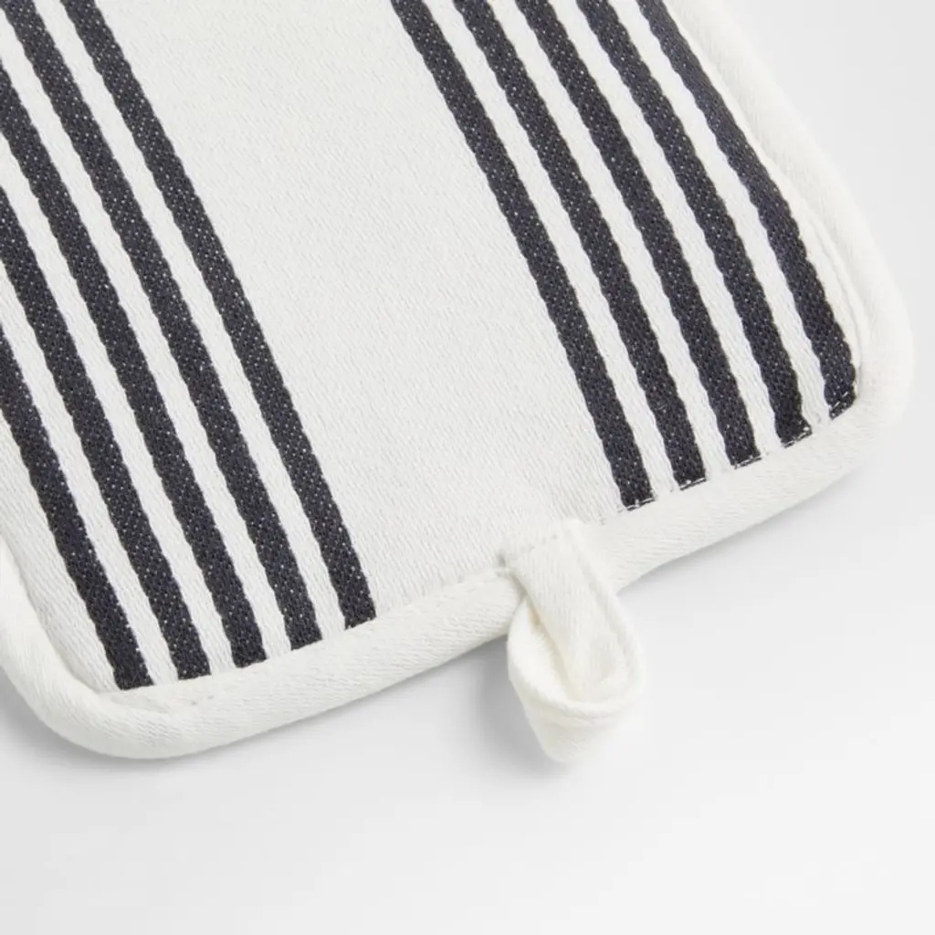 Cuisine Stripe Black Organic Cotton Pot Holders, Set Of 2