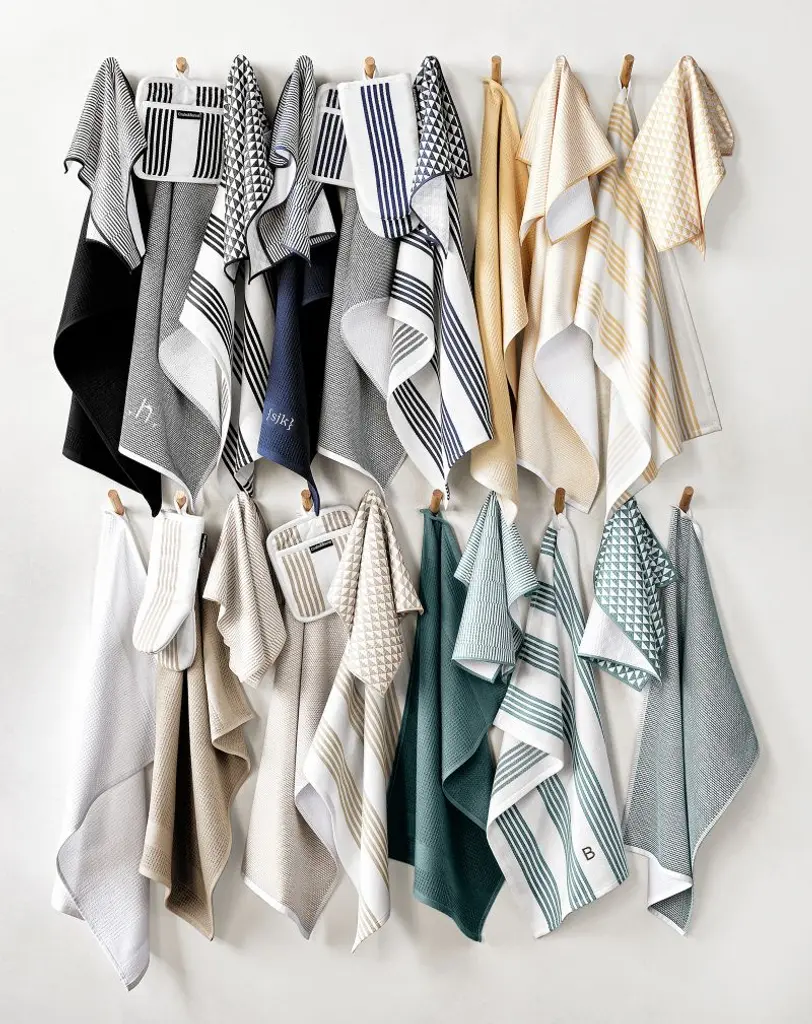 Simple kitchen classics in quality cotton are striped thick and thin in bright white and bold black. Our pure cotton pot holder cleans up easily in the washing machine and gets softer with use and laundering. Pair our exclusive hot pad with our other classic black-and-white striped textiles for a coordinated kitchen.