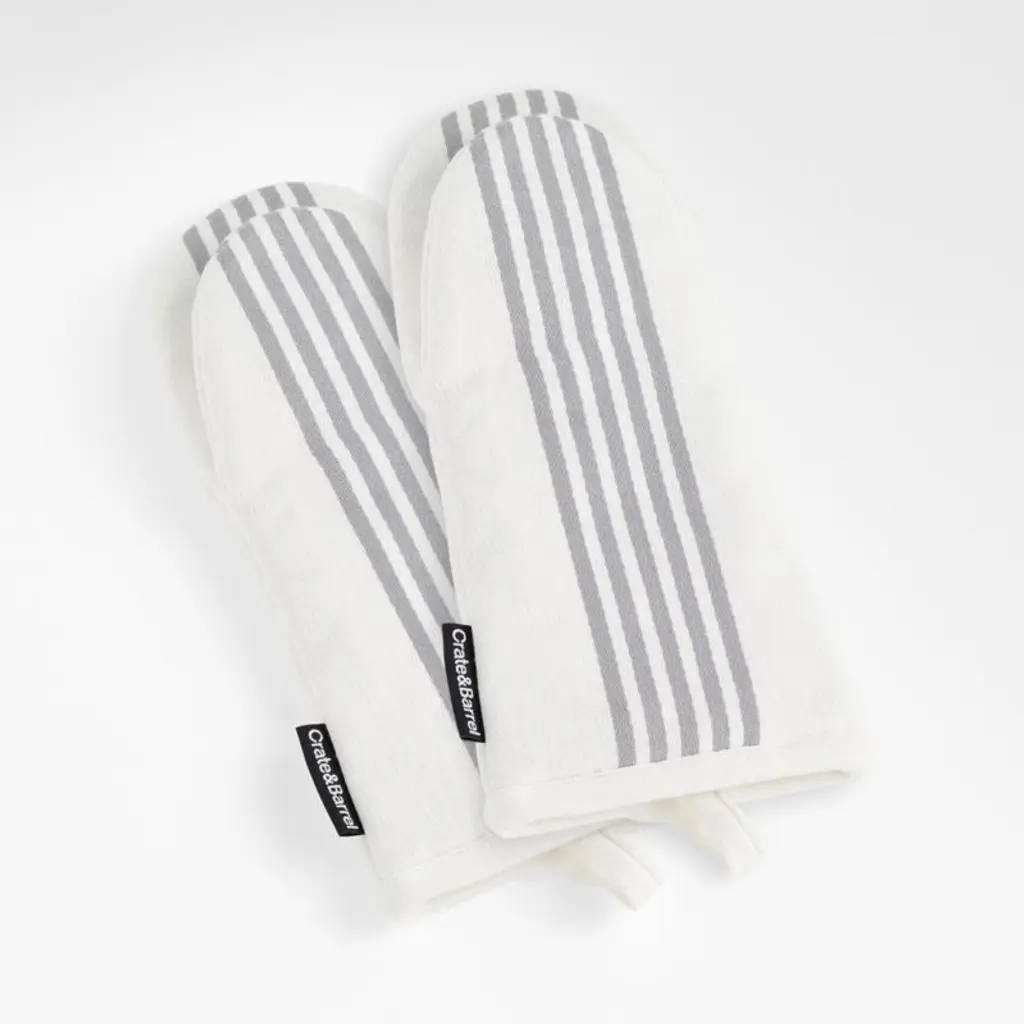 Cuisine Stripe Indigo Organic Cotton Oven Mitts, Set Of 2