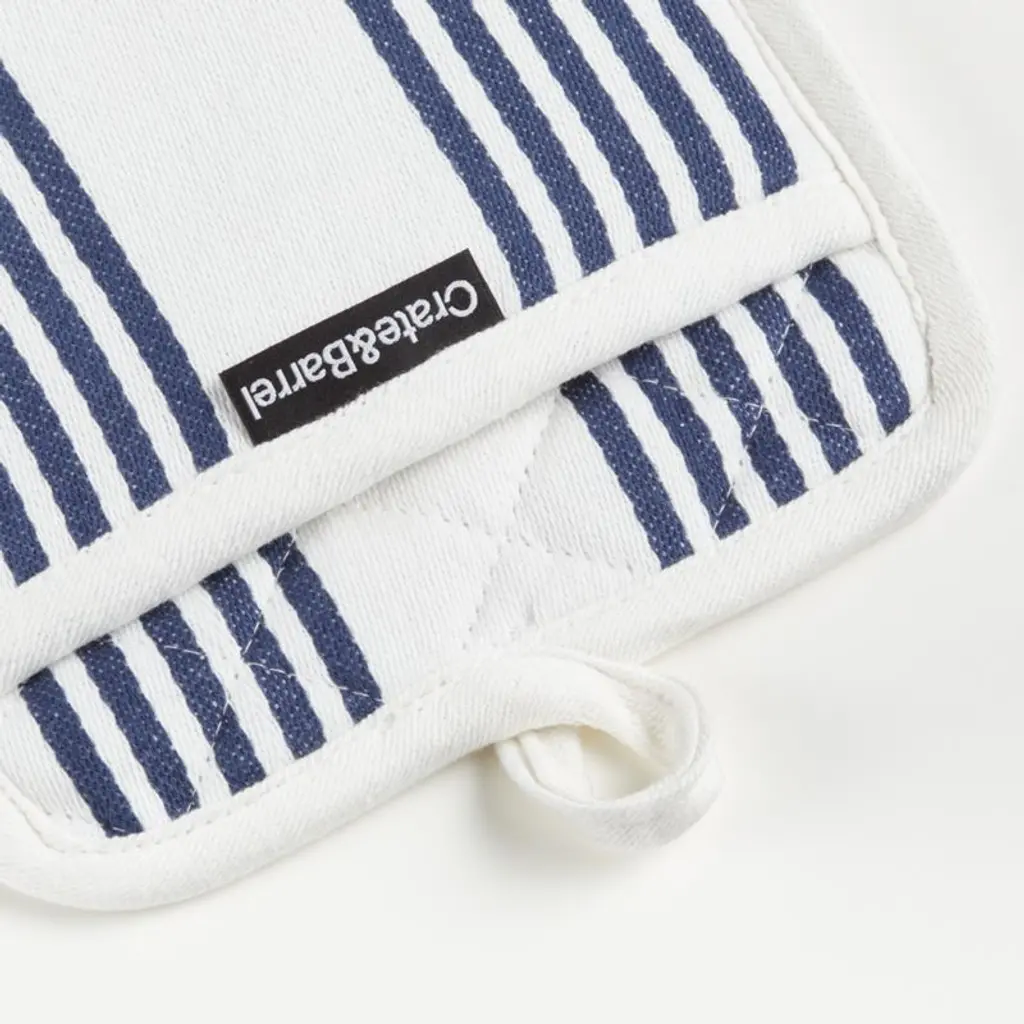 Cuisine Stripe Indigo Organic Cotton Pot Holders, Set Of 2