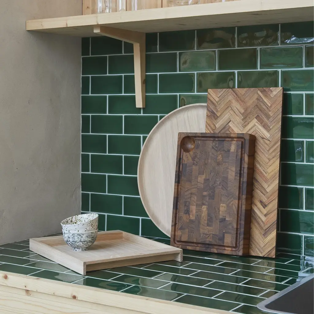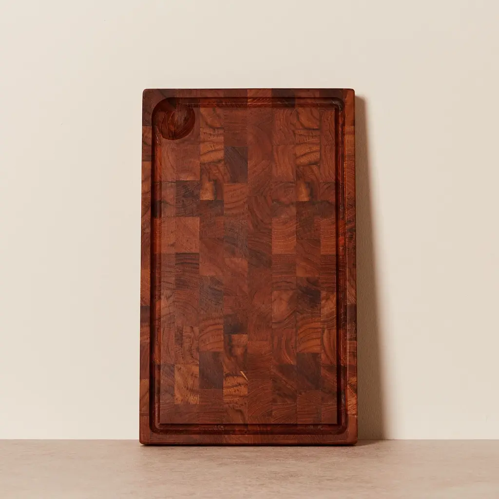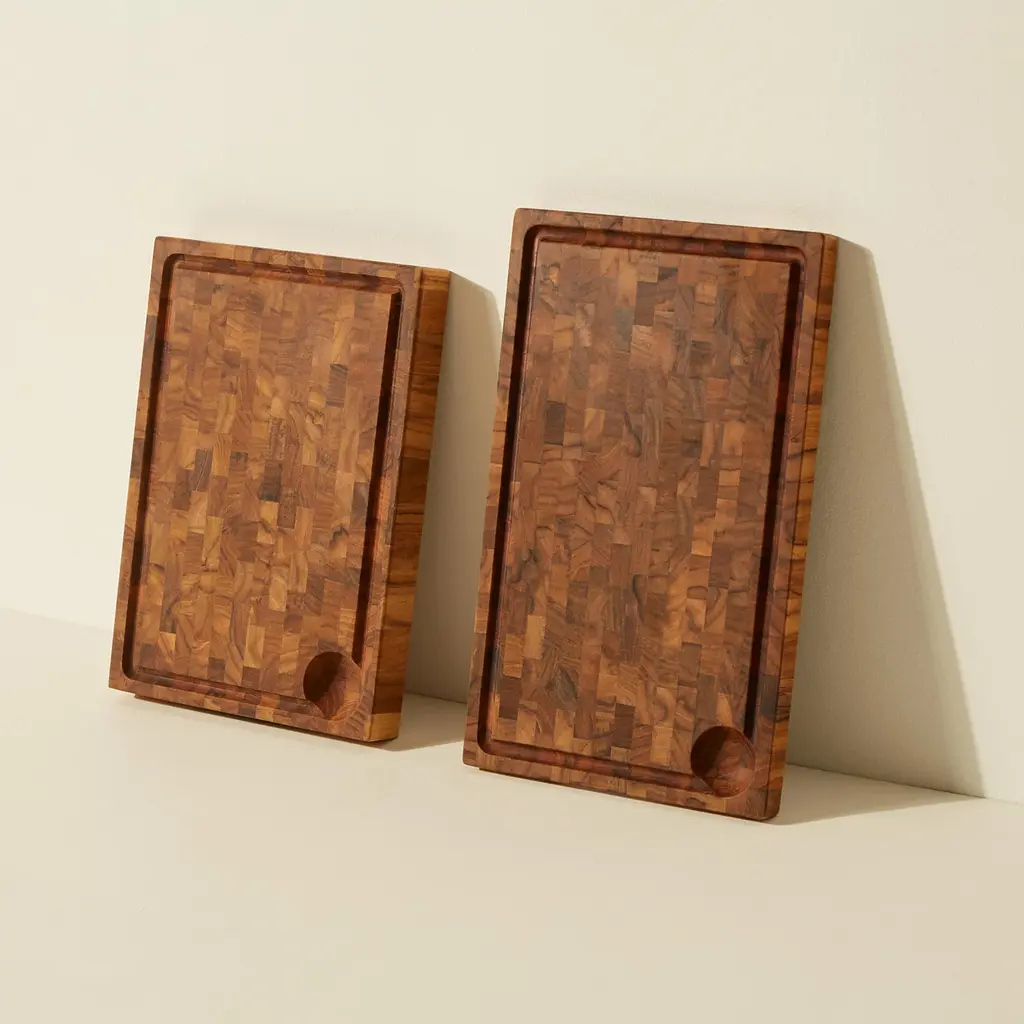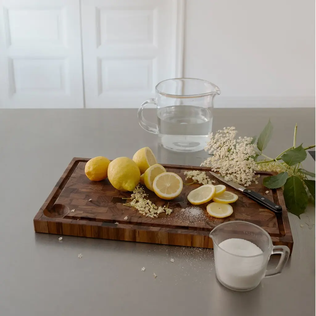 Thanks to a careful and detailed construction and design, this beautiful cutting board offers more than meets the eye. Crafted from teak end grain—a cross section of teak wood rather than a plank of it—the Dania Cutting Board displays a colorful mosaic of teak wood. Skagerak strategically chose FSC- certified teak as the material of choice: The durable wood is known for resisting moisture and germs. Gentle on your knives, your blades stay sharper longer thanks to the grain's excellent ability to absorb impact. The board's built-in grips make for an easy set-up, while a deep groove around the perimeter stops liquids and crumbs from spilling over.