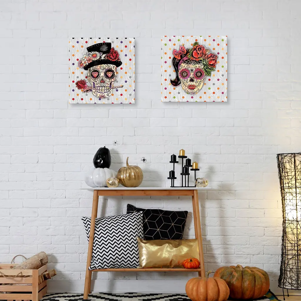 Day Of Dead Sugar Skulls Bride And Groom Ceramic Salt And Pepper Shakers - Multi - Multi