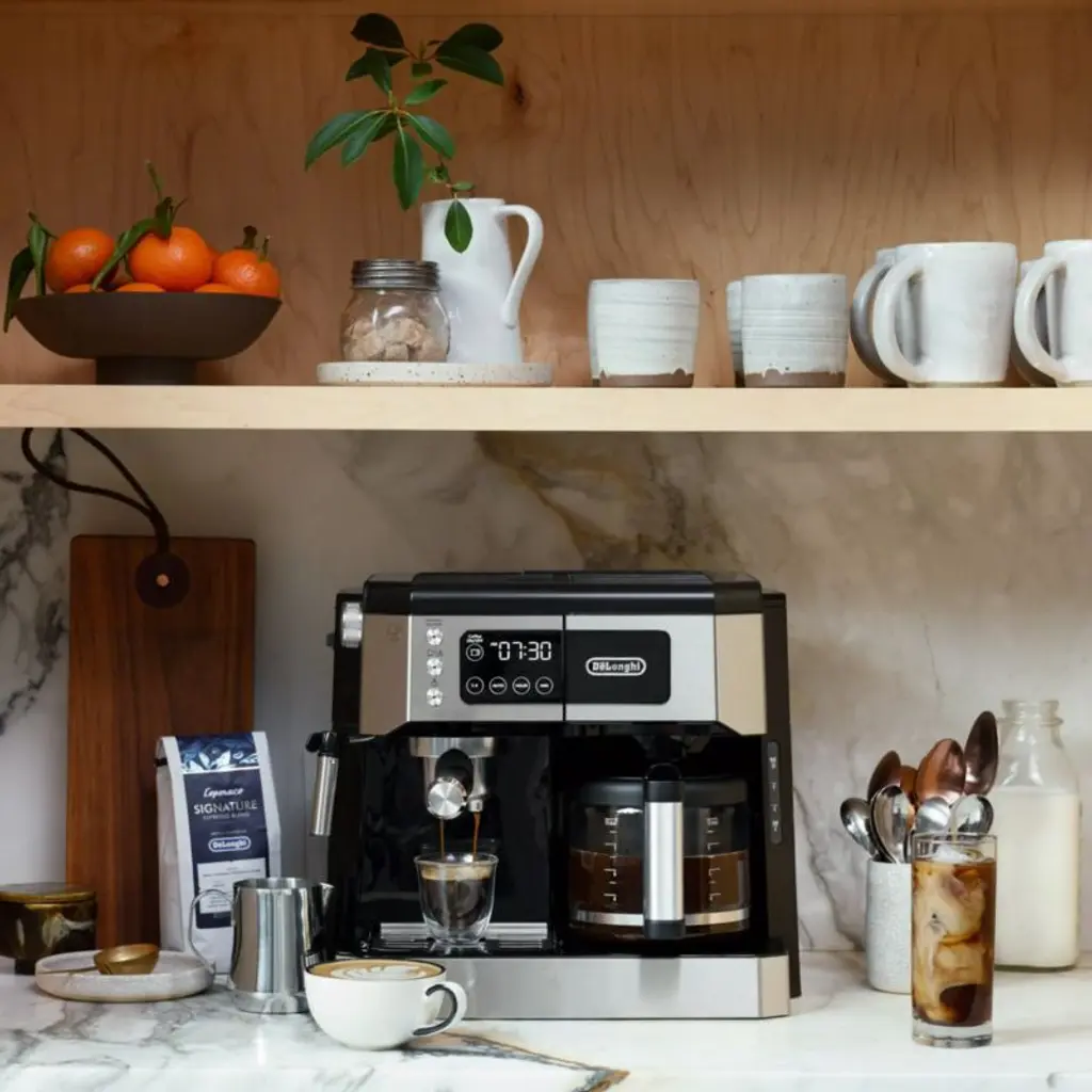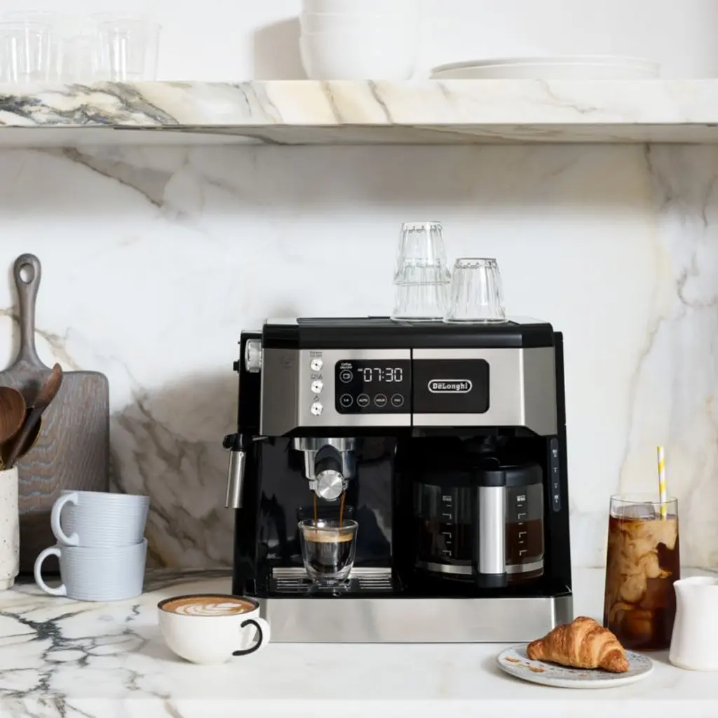 This coffeemaker's dual heating system brews coffee and espresso at once for the best of both worlds in no time. The pump's 15 bars of pressure ensure rich, authentic Italian flavor, while the advanced steam and frothing wands enable you to tap your inner barista to craft frothy lattes and cappuccinos. And thanks to its 24-hour programmable timer and digital touchscreen, you can wake to the smell of fresh, brewed coffee and customize every beverage to your exact liking.