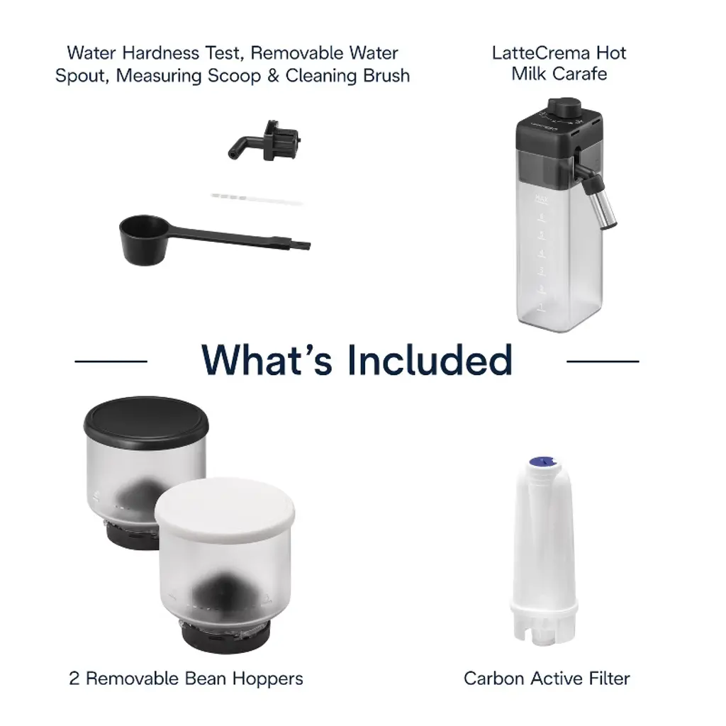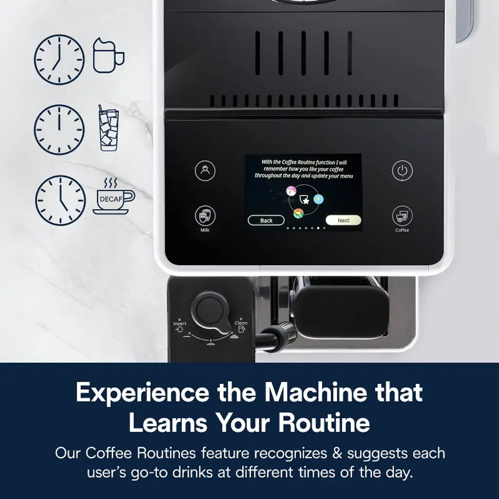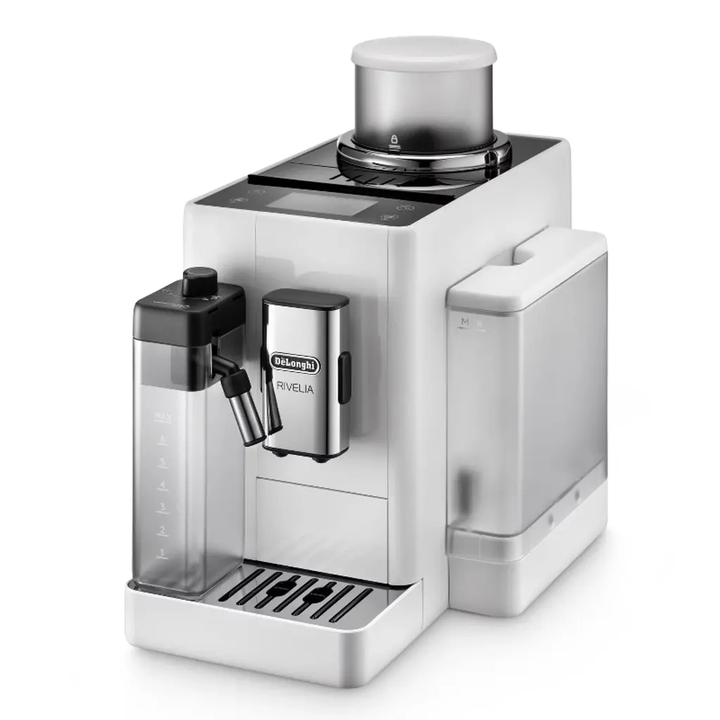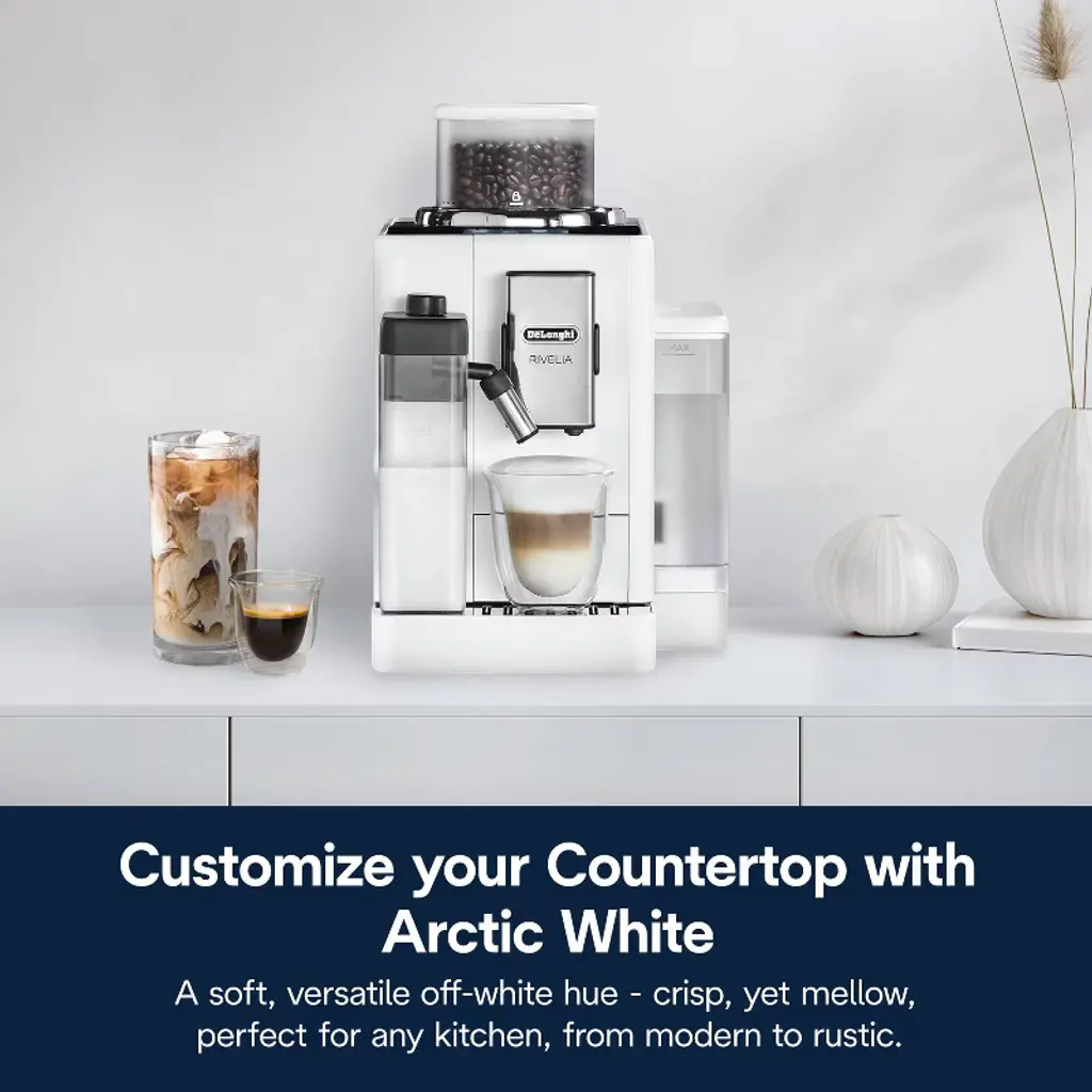 Delonghi Rivelia Automatic Coffee And Espresso Machine With Milk Frother & Bean Switch System 18 One-touch Recipes, 4 User Profiles Arctic White