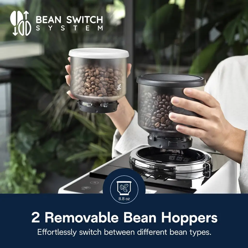 Your favorite drinks are just a touch away—grind, dose, brew and froth in style with the Rivelia fully automatic espresso machine. This compact, award-winning design invites you to easily and intuitively switch up your daily coffee routine with ease and customization—from instantly swapping between bean types, to tailoring your brew to your bean, to learning and storing your individual preferences for you and three other users for the perfect drink, to custom colors to bring out your personality in the kitchen. It all starts with the innovative Bean Switch System: interchangeable bean hoppers that enable you to explore worlds of coffee flavor by swapping one fresh bean type for another without missing a beat. Go from a robust dark roast in the morning to a light decaf latte or rich espresso martini later in the day. Then Rivelia’s Bean Adapt Technology becomes your personal coffee expert—helping you set and save each unique bean’s ideal grind, dose and temperature to ensure the perfect extraction every time. Guesswork: gone. Options: infinite. Rivelia’s fully automatic LatteCrema Hot System takes all the fuss out of frothing. There’s no messy steam wand or complicated manual control. With just the touch of a button, you can easily froth milk or plant-based alternatives directly into your cup to create steamy, creamy lattes, cappuccinos and other specialty drinks with ease. And with four distinct user profiles, smart menus that update throughout the day based on your coffee routine and a 3.5-inch color touch display featuring an expansive menu of hot and cold recipes, coffeemaking at home is transformed from a daily to-do to a delightful moment that can match any mood, with any bean, any drink, at any time of day. With the Rivelia and its modern minimalist design that’s more décor than appliance, the power to switch and personalize your coffee experience at home is at your fingertips.