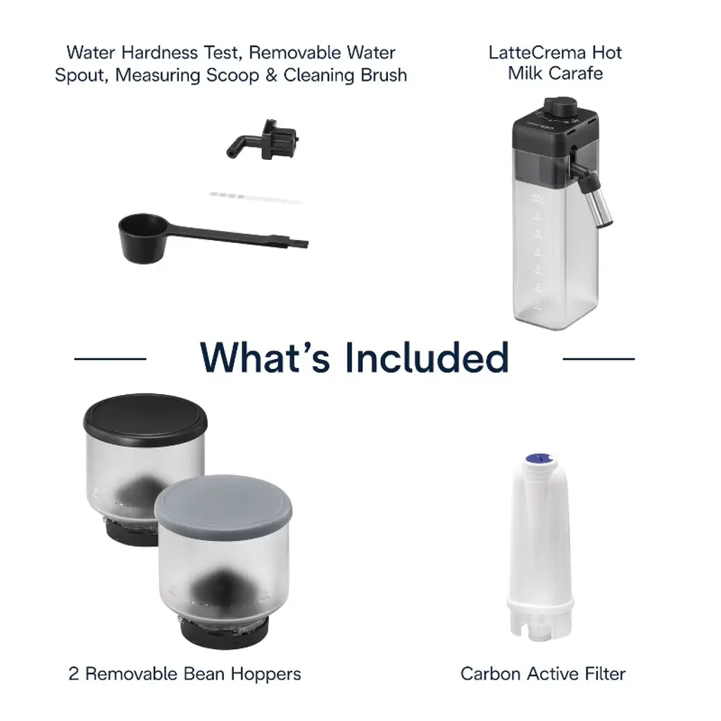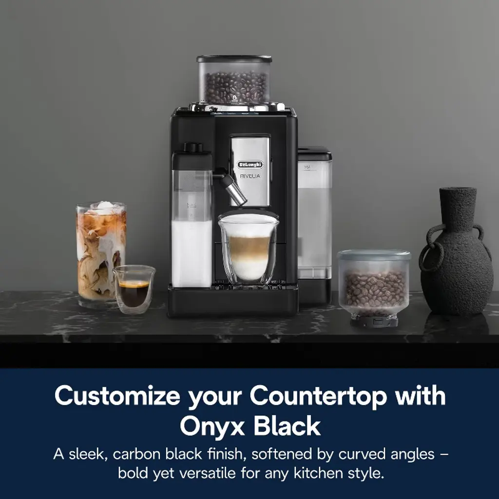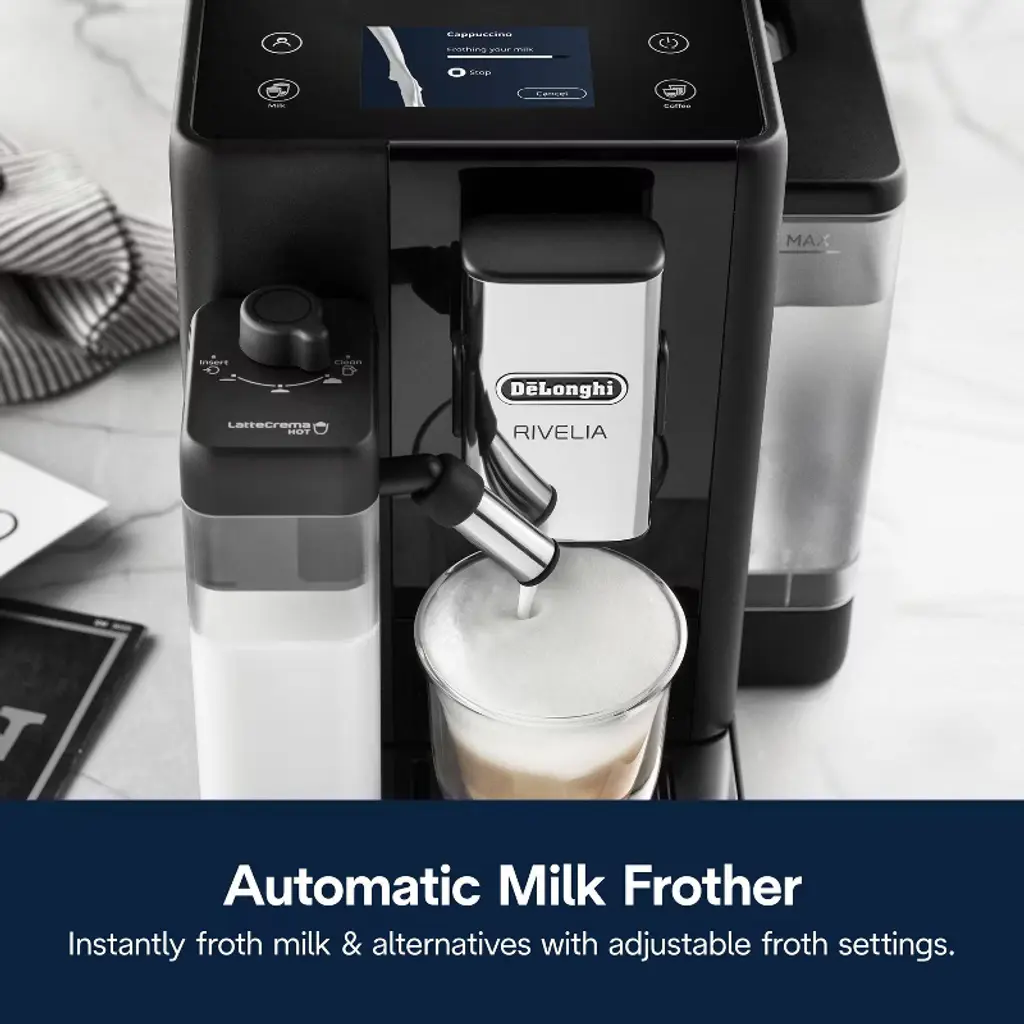 Delonghi Rivelia Automatic Coffee And Espresso Machine With Milk Frother & Bean Switch System 18 One-touch Recipes, 4 User Profiles Onyx Black